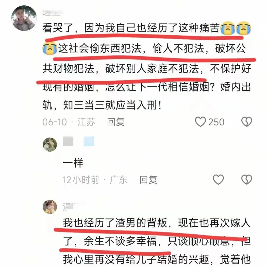 相由心生,你看这个男的大嘴小眼,女的高颧骨凸嘴。不是批判别人的长相,只是说这种长相一看都是那种很自私,很精明,很自我的人。 网友说得真好,偷东西犯法,为什么偷人不犯法,破坏公共财物犯法,为什么破坏别人婚姻不犯法? 这个社会对第三者,对那些道德败坏的人太宽容。 有些人谈恋爱谈的乌七八糟的,借着爱的名义乱来。纯爱的人越来越少,真心和付出不被珍惜。 这种风气真的应该拨乱反正了。