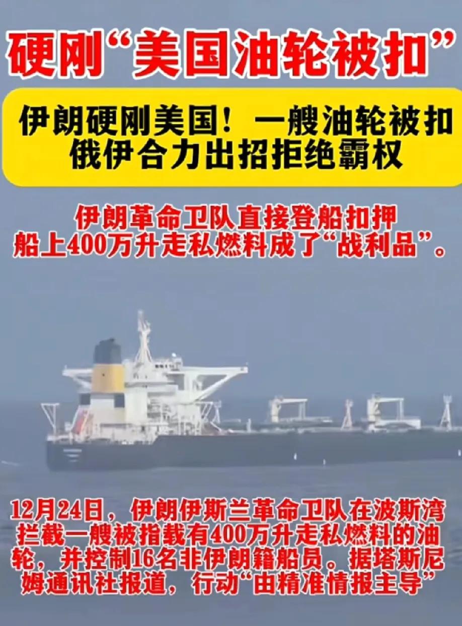 现世报上演,伊朗硬刚老美,你抢委内瑞拉的船,我扣你的船! 就在美国大张旗鼓在委内瑞拉外海摆龙门阵封锁委内瑞拉的时候,中东这边的伊朗却是在波斯湾给美国上了一课——抢美国的游轮! 美国指责委内瑞拉的政府是恐怖主义政府,对其扣船的行径明目张胆,这是严重违背国际法的行为,美国这是拿世界警察的大棒在挥舞。没想到伊朗根本不惯着他,你说人家恐怖主义,那我就给你安一个走私的理由,反正都是撕破脸了,谁怕谁! 更搞笑的是伊朗和委内瑞拉在五天前才签订了战略合作协议! 这样看来伊朗的行为就很有意思了! 美在委内瑞拉围而不打逼迫马杜罗下台,伊朗在波斯湾扣美国的油轮,内塔尼亚胡又要在年底去美国,商议的是美以针对伊朗的行动! 如今看来,伊朗这一次是有意为之了!