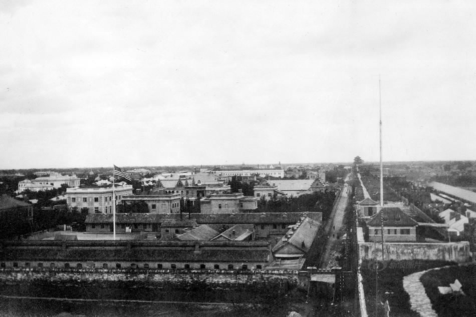 这张照片拍摄于20世纪20年代,北京东交民巷使馆区内美国公使馆及其兵营的鸟瞰图。