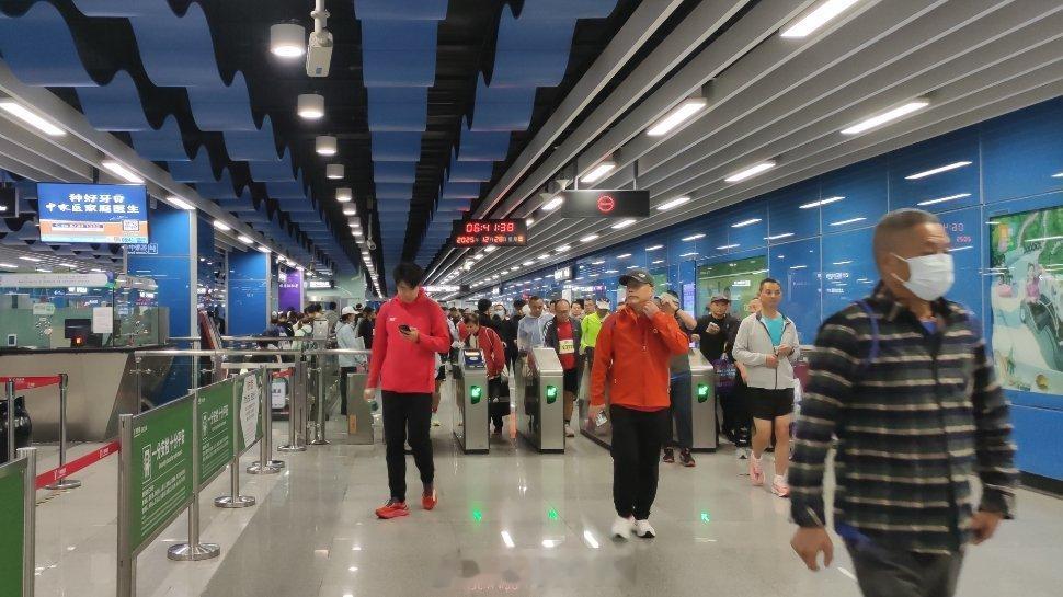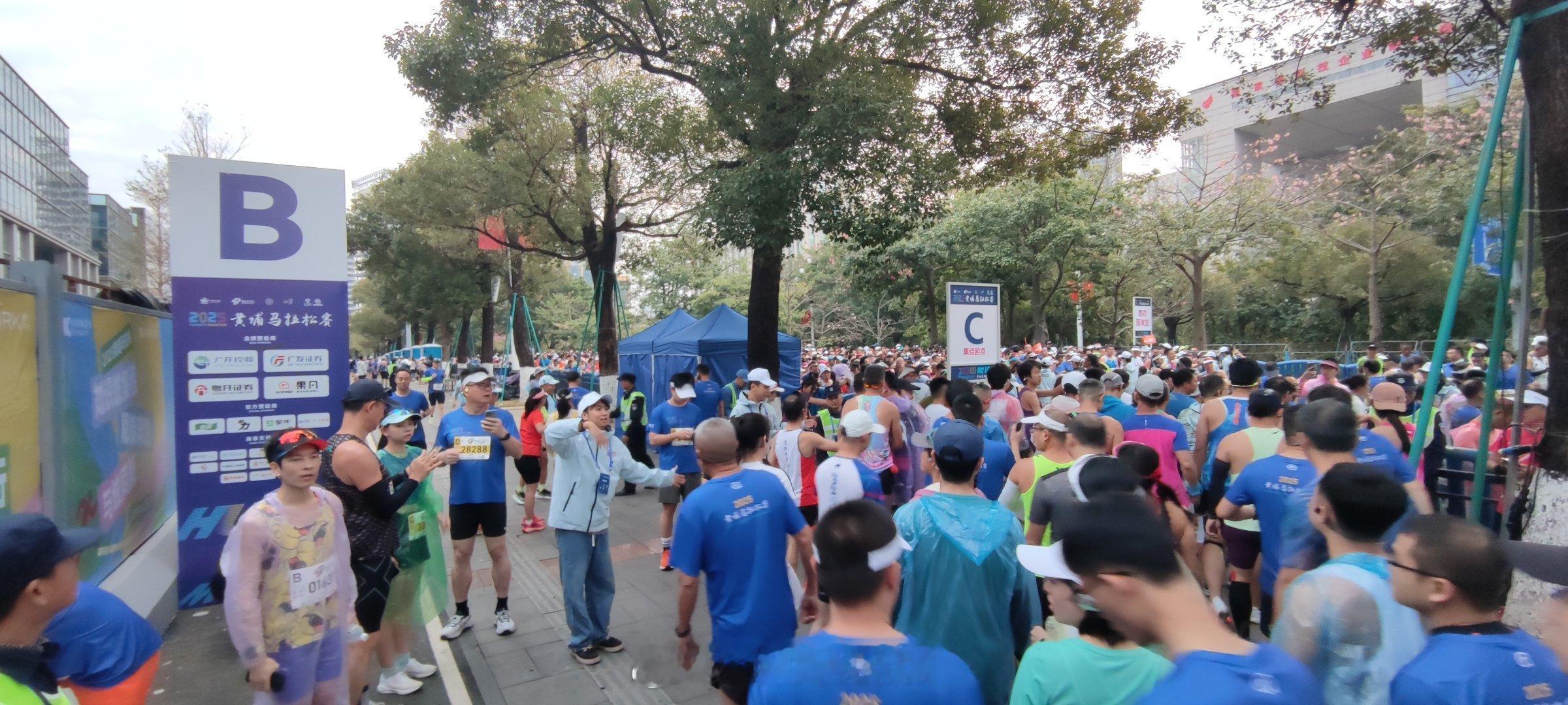 2025广州黄埔马拉松集结。地铁所有出口开放不验票,此时的确没有闲杂人等来此处。地铁内指路志愿者位置冗余,一个无岔路通道内站了两个同功能岗。集结区外移动厕所分女士专用、男士小便等。全马存包后看不到AB区路牌(要走到差不多分岔路口才有),要问。B区入口“C区起点”牌子更明显。跑步广州黄埔马拉松赛事组织 广州·广州科学城体育公园
