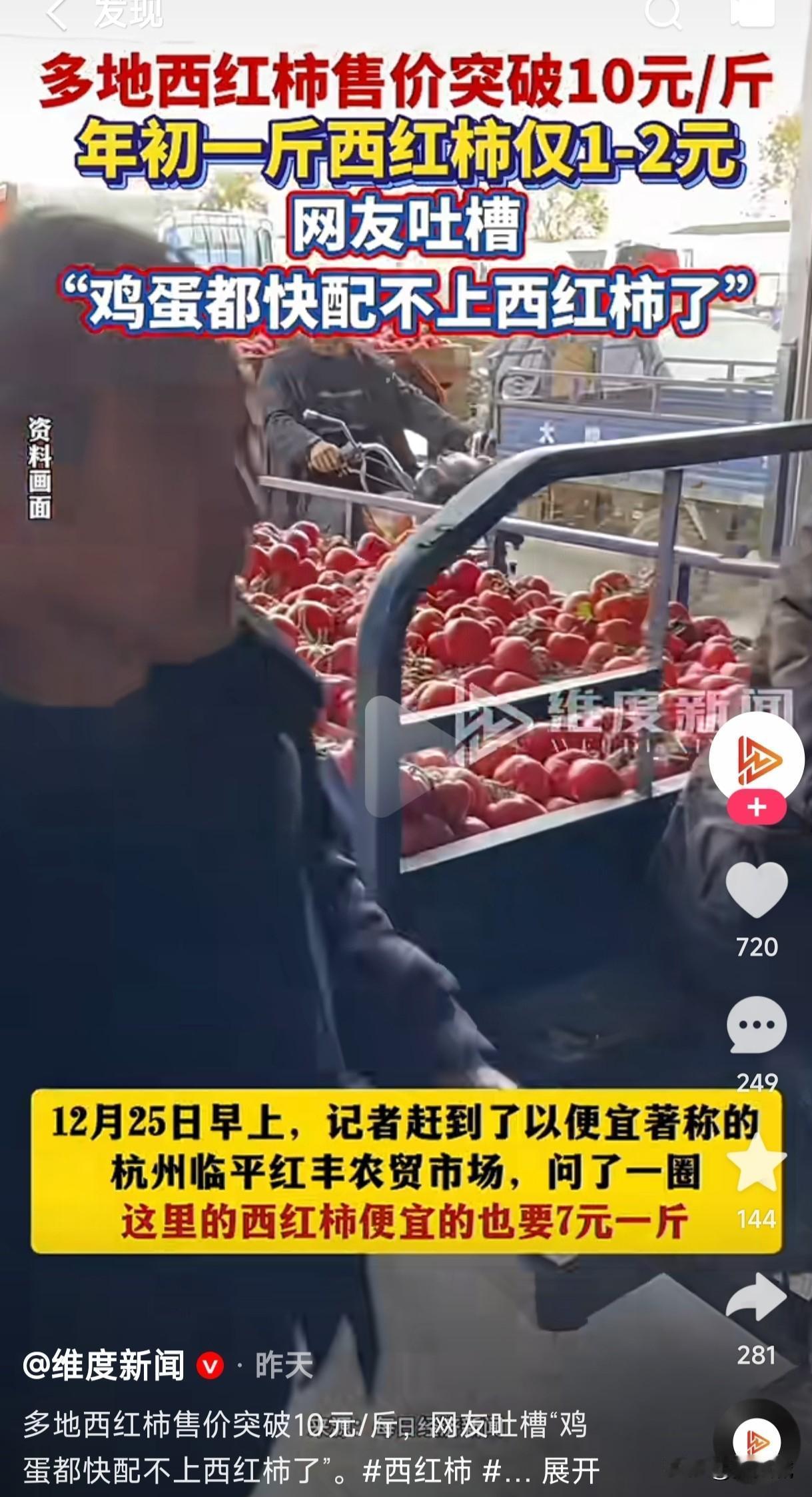 我以为只有我觉得最近的西红柿贵的有点离谱,原来有网友和我是一样的心情,西红柿在涨价鸡蛋还能配的上它吗? 话说每年冬天菜价有点高这很正常,但最近的西红柿价格却高的有点离谱,其它的菜价格和以往想比也没有多大的区别,高也就高一两块最多了,但这西红柿不知道为什么会这么贵,基本上一天一个价格,而且每天都在涨价,这到底是什么原因导致西红柿这么贵? 一斤西红柿的价格都能买好几斤鸡蛋了,这鸡蛋还能配的上西红柿吗,到底是西红柿劈腿了,还是令寻其它蔬菜搭配了,鸡蛋无论如何都没有想到西红柿的价格居然高过自己好几倍,这还能一起搭配上桌吗?