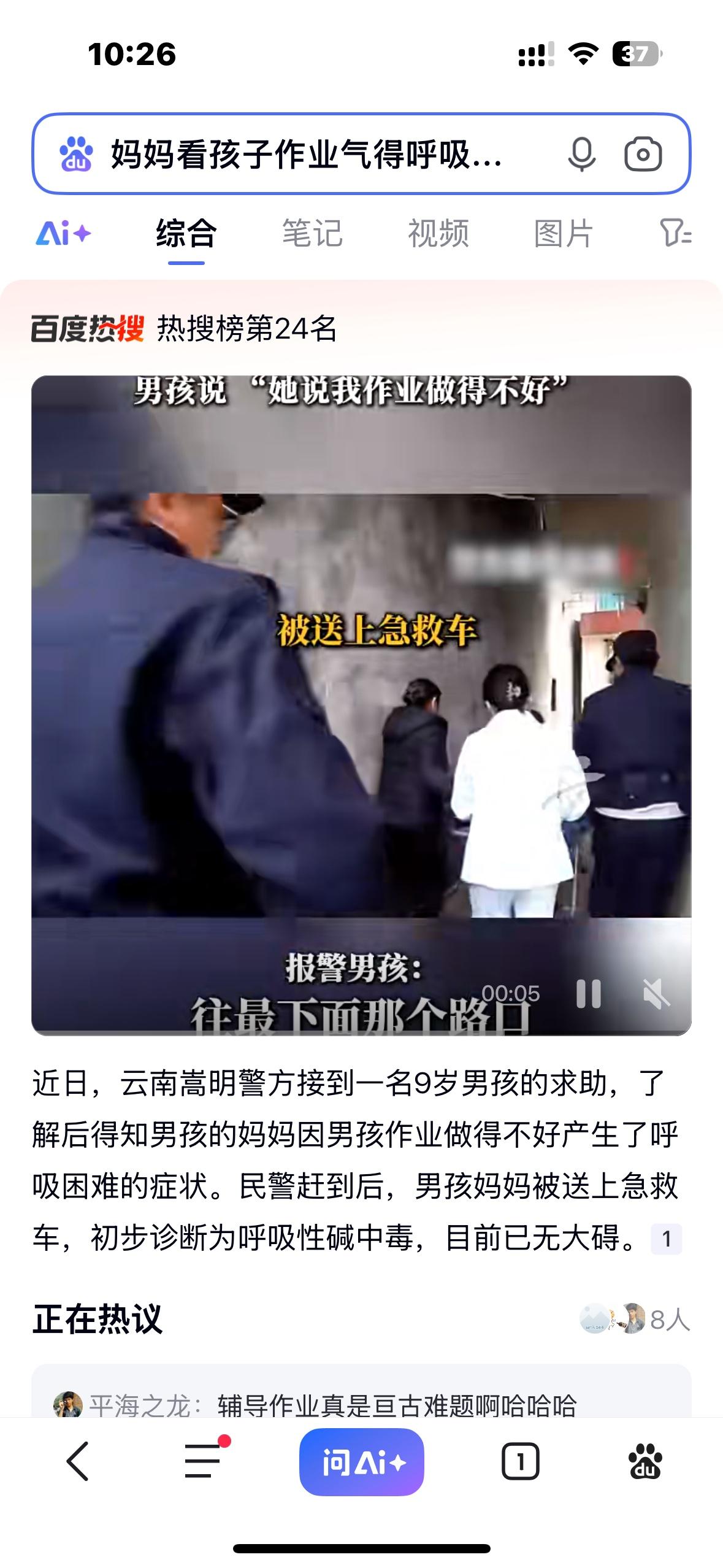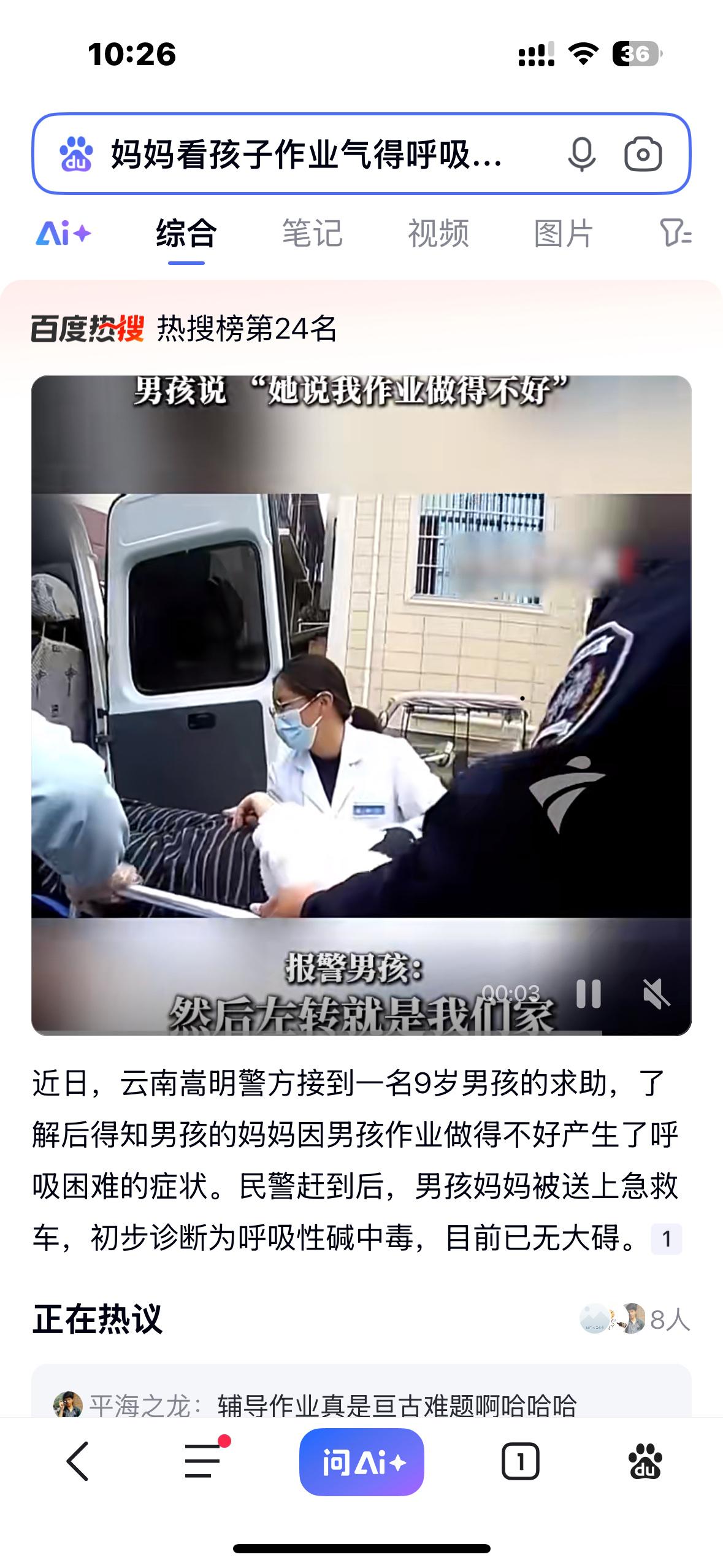 孩子报警! 近日,云南嵩明警方接到一名9岁男孩的紧急求助,询问后得知,男孩因作业完成质量不佳,致使母亲情绪激动引发呼吸困难。民警火速赶赴现场处置,随即协助将男孩母亲送往医院,其初步诊断为呼吸性碱中毒,目前已无大碍、平安无碍。愿母孑早日走出困局。