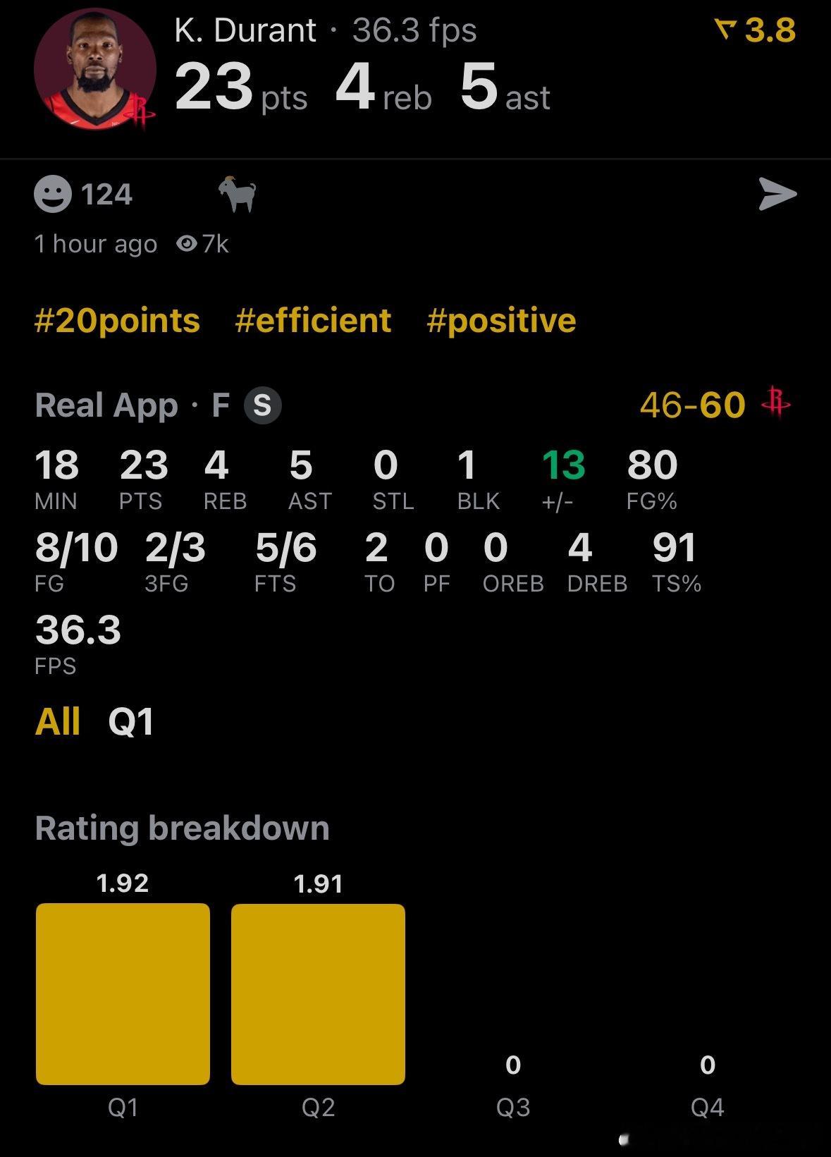 死神提前降临😤杜兰特上半场10中8高效拿下:23分 | 5助攻 | 4篮板 | 1盖帽 | 91%真实命中率🔥骑士vs火箭休斯顿火箭休斯顿火箭