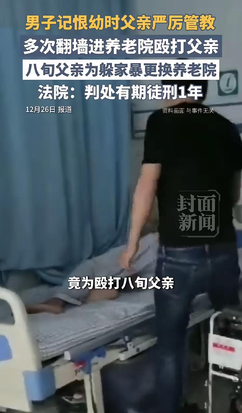 山西运城,一男子因记恨父亲小时候管教太过严厉,长大成年后,不仅拒绝赡养父亲,而且还经常动手殴打年迈的父亲,女儿无奈之下把父亲送到了养老院,可谁知,男子依然不死心,竟然多次翻墙进养老院将80岁老父殴打成重伤。 运城这家养老院的铁栅栏,简直成了这位八旬老人的噩梦。就因为记恨父亲小时候管得严,这男的一次次翻院墙进去打老人,老人光是听见他的声音,身子就止不住地抖。老人年轻的时候对儿子严厉,无非是想让孩子走正道,哪能想到,这份管教最后竟成了儿子打自己的理由。 这男的成年后就跟父亲断了联系,既不养也不看,老人生病的时候,全靠女儿忙前忙后照顾。女儿本以为把父亲送进养老院,就能让老人躲开哥哥的打骂,可压根没料到,她哥偏执到这种地步。第一次翻墙进来,他直接揪着父亲的衣领把人拽倒,护工上去拦,还被他吼着赶开;第二次更过分,凌晨趁养老院安保松,溜进父亲房间对着熟睡的老人就踹,把老人额头磕出个大包;就算老人转到偏远的养老院,还是被他找着了,这次直接把老人打得肋骨骨折,躺床上连身都翻不了。 民警来的时候,老人躺在病床上,一个劲说自己没教好儿子,可这男的被问起为啥打人,半点悔意都没有,还说就是要报复父亲当年的严厉。法院后来调了养老院的监控,看了老人的伤情鉴定,又问了街坊邻居,最后以故意伤害罪判了他一年有期徒刑。一年的刑期是有了说法,但老人身上的伤、心里的疙瘩,哪是一年就能好的。 原生家庭的教育问题确实能聊,但绝对不能拿这个当借口去打亲人。这男的做的事,早就不是简单的家庭矛盾了,既没尽到赡养老人的本分,还实实在在犯了法。现实里也有不少人拿“原生家庭”当由头,随便发泄情绪、伤害家人,说到底,这就是既不把亲情当回事,也没把法律放在眼里。 最近这些年,养老院里老人权益受侵害的事也听过几回,除了打人的人本身心术不正,养老院的安保也有问题。这次这男的能多次翻墙进去打人,就说明有些养老院的安防管理根本不到位,得把养老机构的安全防护弄好,才能真的护住老人的晚年。 难道原生家庭的过去,就能成为打父母的理由吗?碰到这种针对老人的家庭暴力,法律和社会该怎么更好地保护老人?大家可以在评论区说说自己的想法。