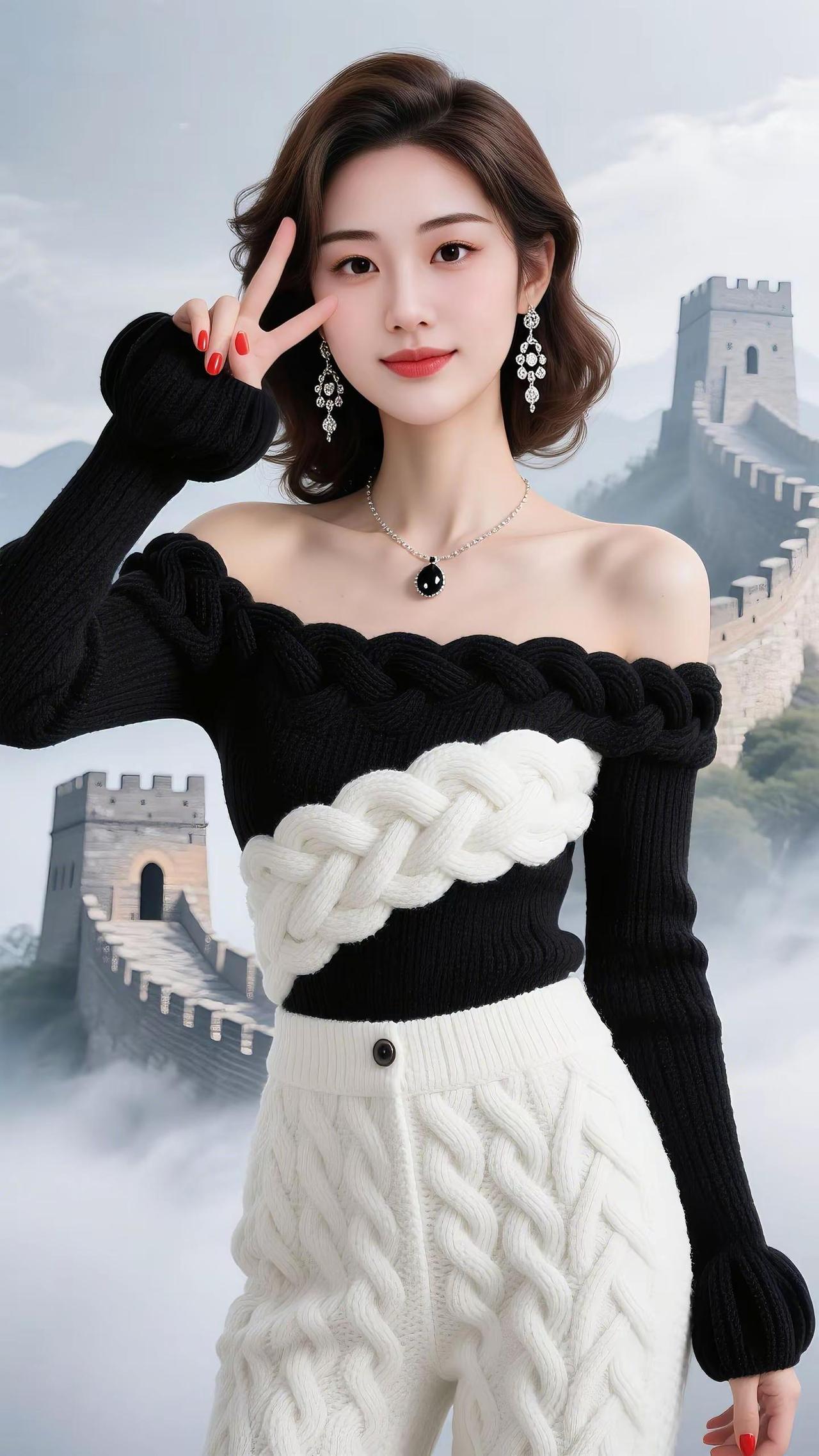 长城下的甜酷时刻,黑白穿搭真的太出片啦~长城拍照黑白系穿搭