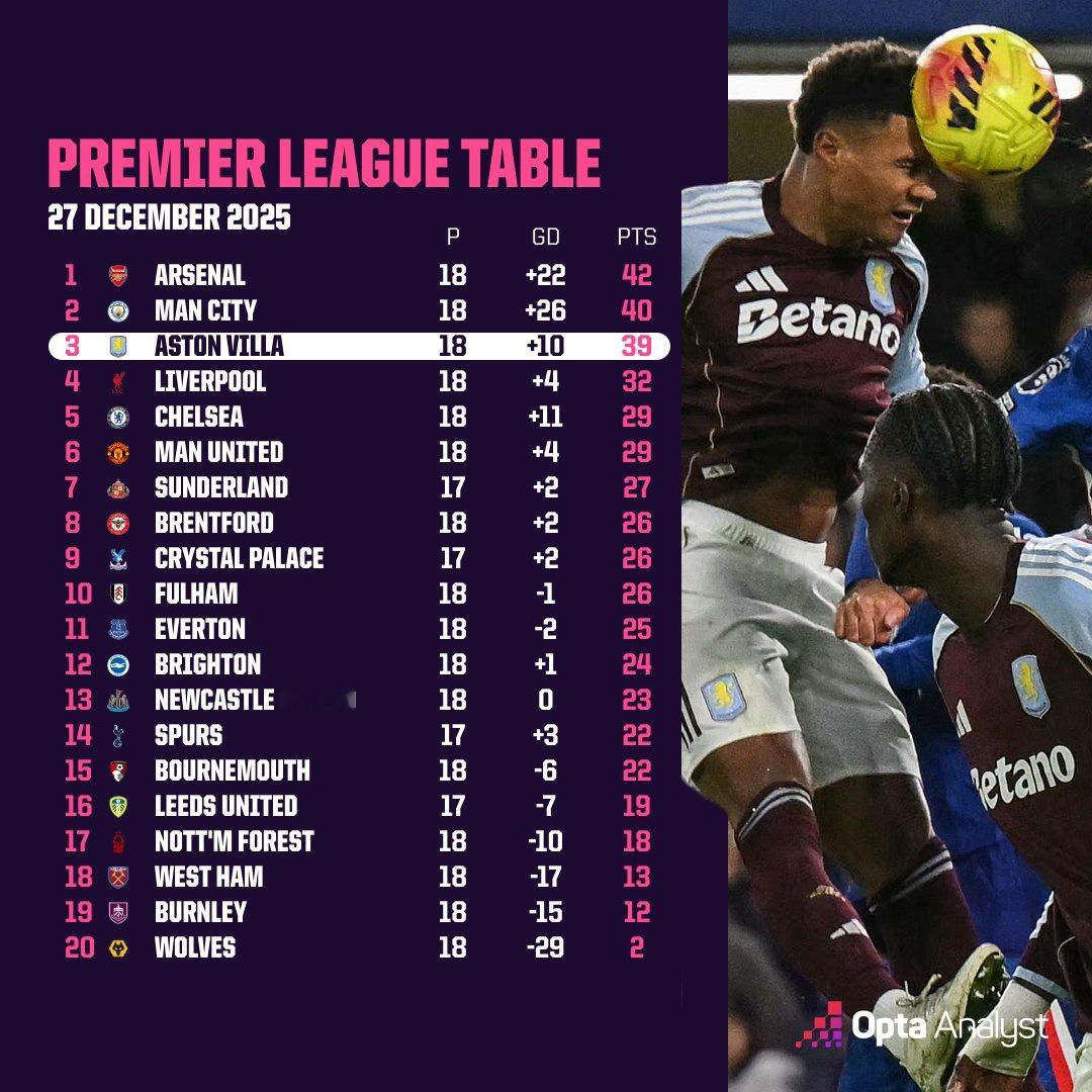 阿斯顿维拉各赛事11连胜切尔西1比2阿斯顿维拉 阿斯顿维拉在本赛季5轮的结束的时候排名英超第18,而如今18轮结束之后排名第3,距离榜首的阿森纳只差3分,下一场比赛两队也将正面交锋。埃梅里在维拉2-1切尔西赛后被问到争冠问题:“联赛又不是明天就结束了,不只有下一场打阿森纳,还有20场比赛要踢呢。”
