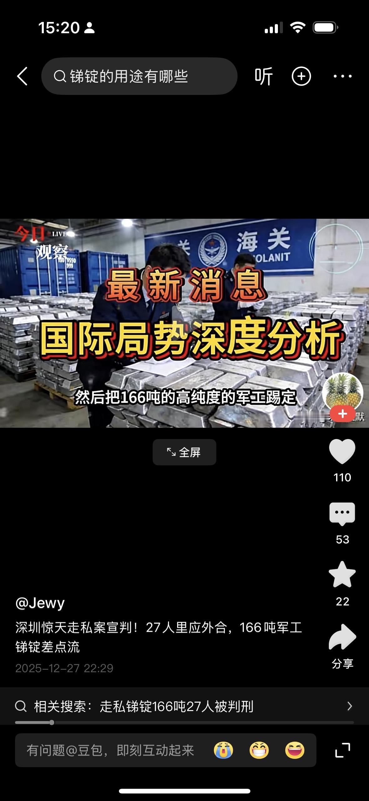 看了一个报道,涉及到一个稀土锑锭的走私案27个人主犯才判了十二年有期徒刑,其他走私分子才判了三年到八年不等的有期徒刑,这种判决也太轻了吧。掏个鸟窝,砍棵树都判了10年,这些犯罪分子把166吨的军工级锑含量达99.9%的锑腚走私到国外去,这些走私出去的锑锭可以造2000枚导弹,全世界一年锑的用量也就200吨,他们一次走私出去的量够别人一年的用量了。而且他们每吨只赚了18,000美金166吨也就是不到30,00万人民币币,问题是你造成的危害造成的国家安全带来的是不可估量的损失,最终应该以叛国罪判处死刑,这些行为不用重刑这些混蛋以后还会有人去干这些危害国家安全的事情。