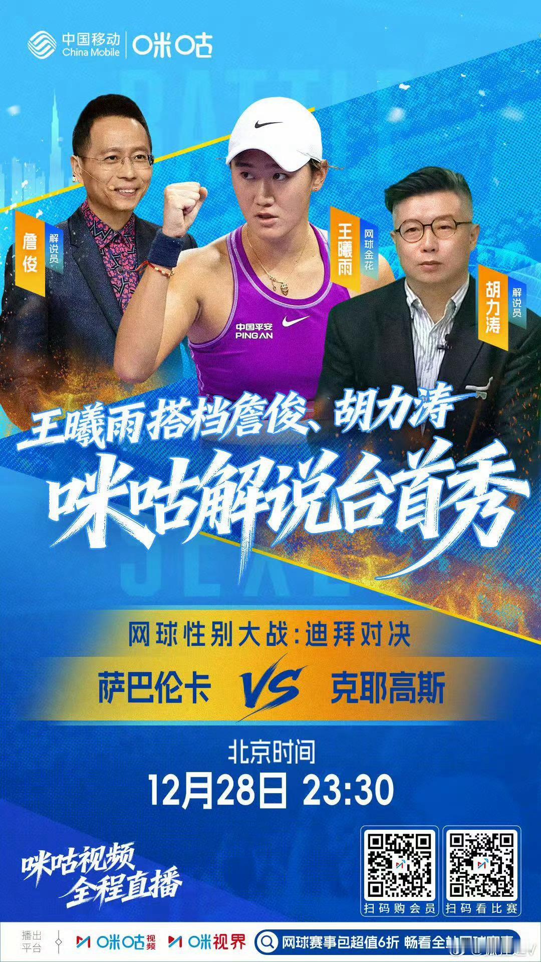 王曦雨解说首秀,今晚迪拜性别大战:萨巴伦卡vs克耶高斯,期待吗!网球talking大会我的2025belike体育大赏网球