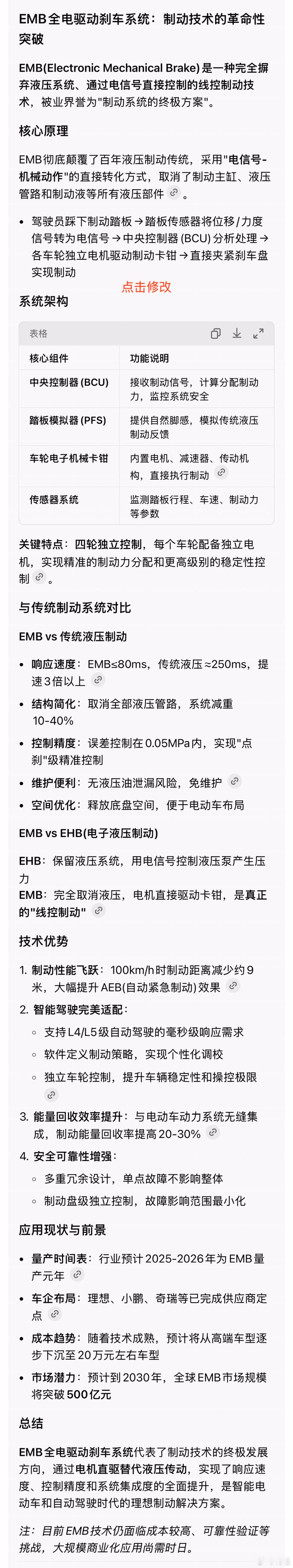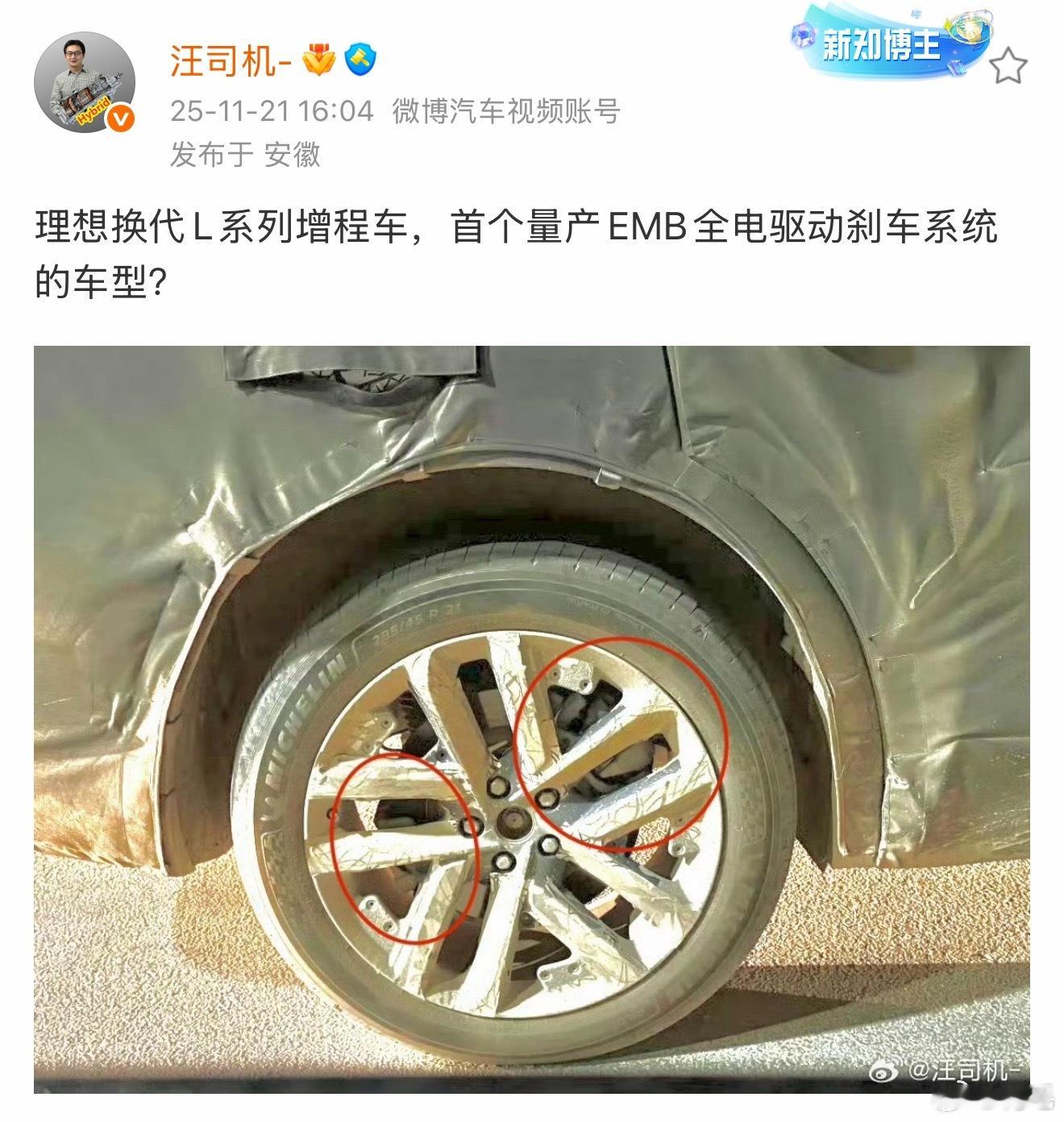 刚看到有博主爆料理想换代L系列增程车可能是首个量产EMB全电驱动刹车系统的车型。顺便用AI恶补了一下「EMB全电驱动刹车系统」的知识点…我看明年还有没有人说理想刹车系统用料不够豪华?