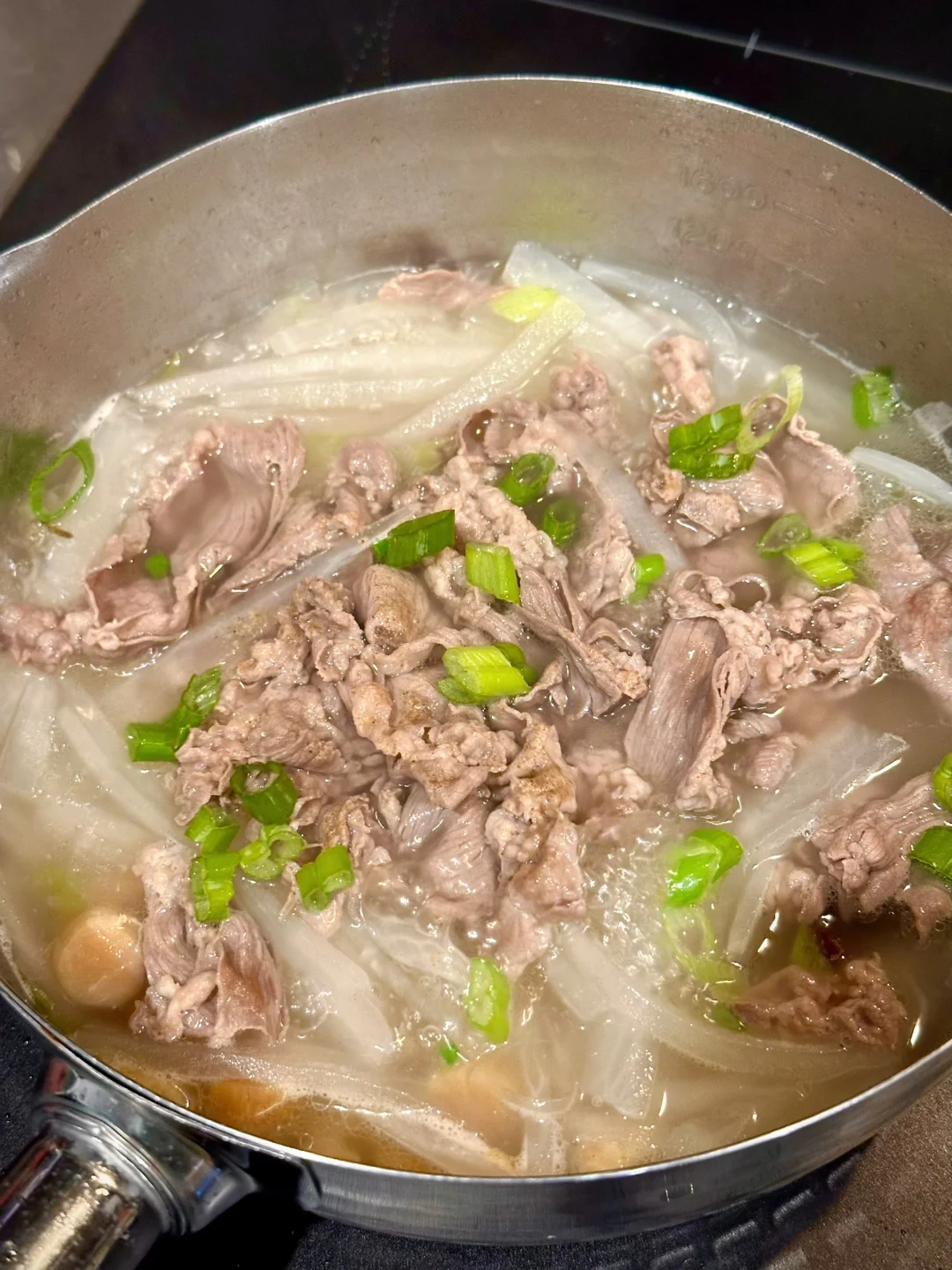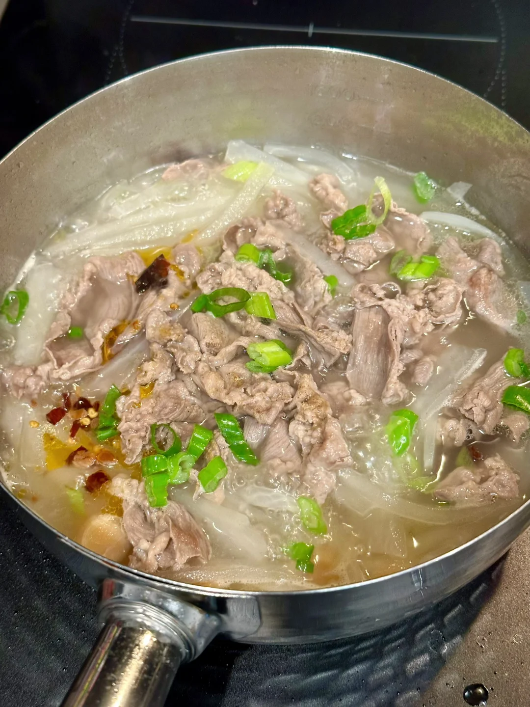 可以算是传统羊汤的简化版,薄片羊肉和萝卜丝缩短了烹饪时间。简单的处理后,即使很清淡也不会有任何异味,吃起来很鲜甜。