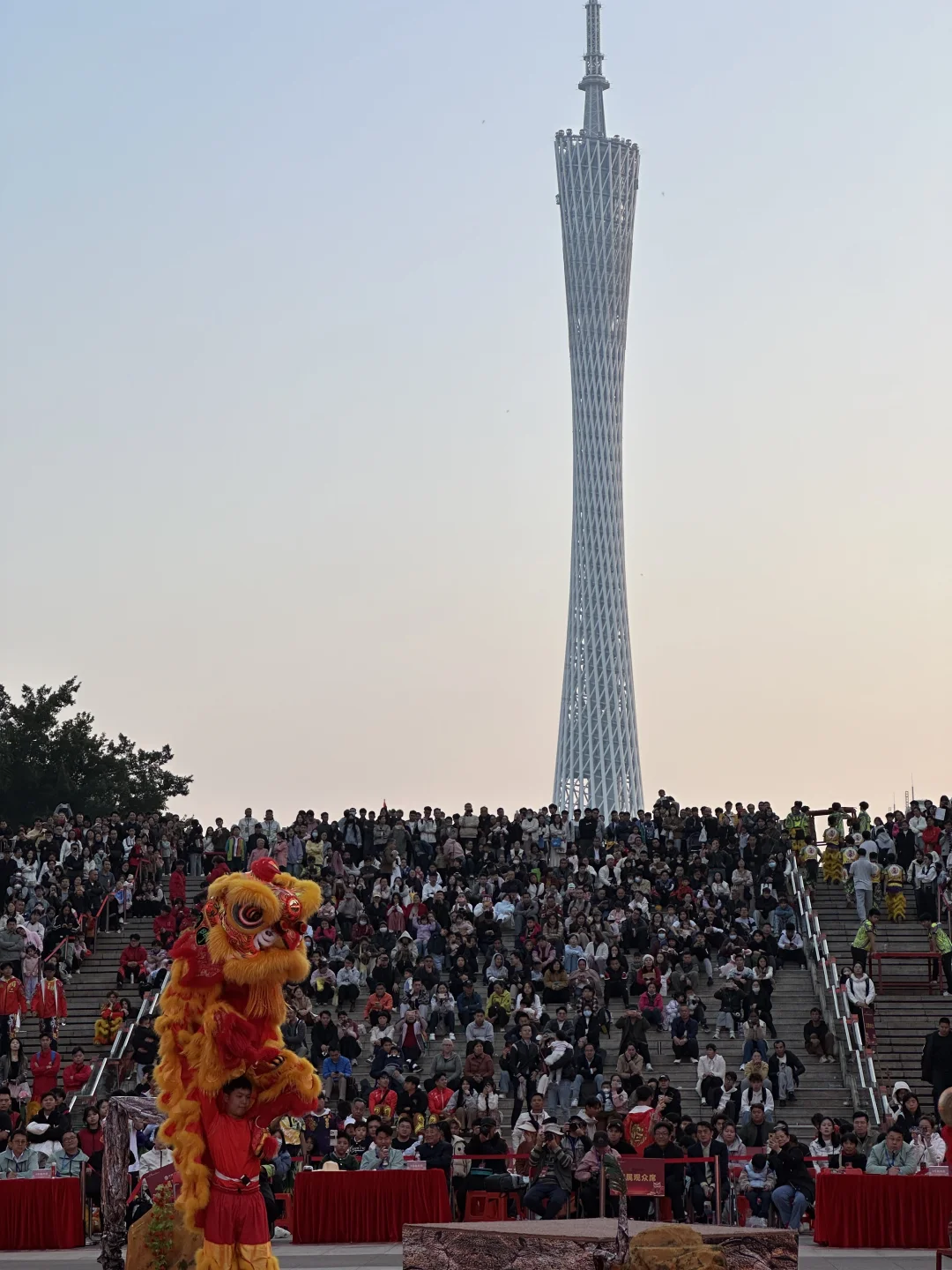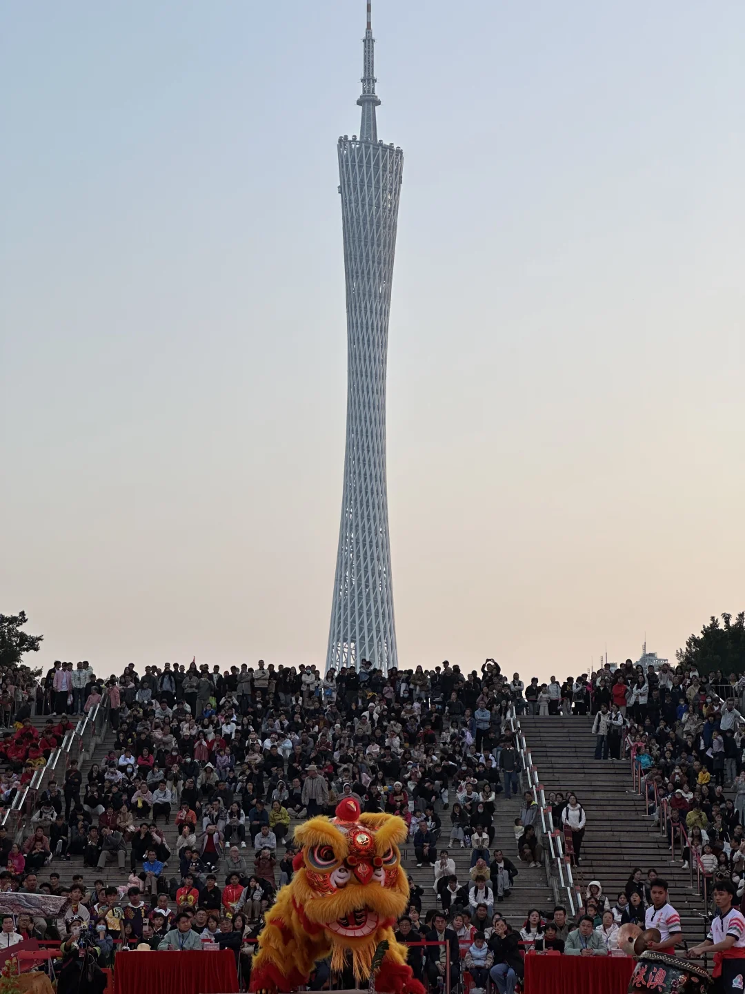 作为广州旅行拍照博主,本来是冲广州塔拍照的,结果刚到花城汇中区下沉广场,就被震天的鼓点和欢呼声吸引!循声跑去一看,红的、黄的、金的醒狮在场地中央腾挪闪转,甩头、眨眼、吐舌,每一个动作都灵动到不行,精气神直接拉满~