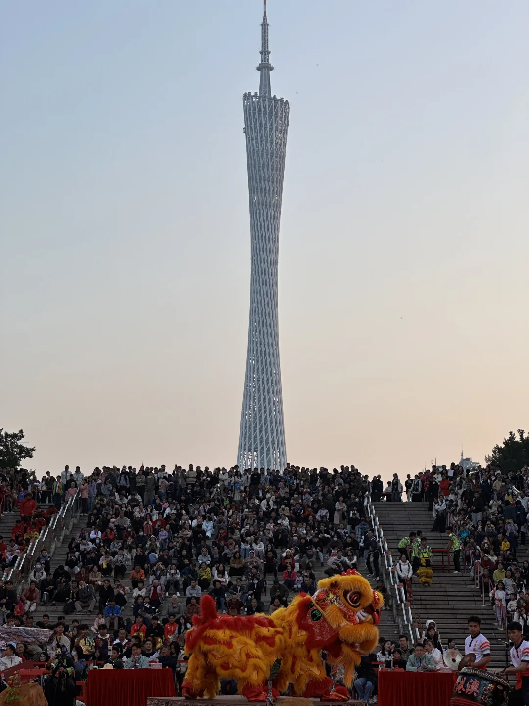 ✅ 广州塔同框C位:站在下沉广场台阶上,让梅花桩上的醒狮和远处的广州塔同框,传统非遗+现代地标,朋友圈赞爆密码get!