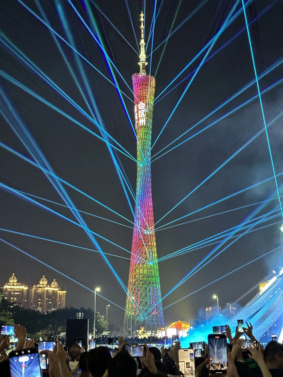 超级期待的就是晚上的灯光节!✨ 等到夜幕降临,整个花城汇瞬间变成梦幻海洋,灯光璀璨夺目,广州塔的七彩灯光和东西塔的光影秀交相辉映,人群的欢呼声和音乐声交织在一起,氛围感直接封神!