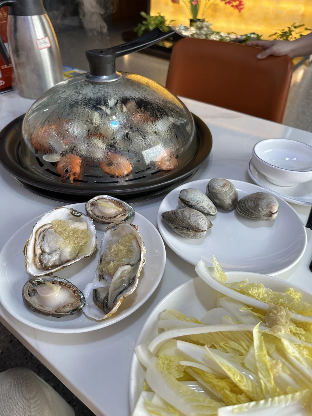 骑到目的地直奔蒸汽海鲜店!🦞 现捞现蒸的海鲜太鲜了,虾蟹肥美多汁,扇贝蒜蓉香扑鼻,原汁原味的鲜甜在嘴里爆开,连汤汁都想拌米饭吃,幸福感直接拉满~