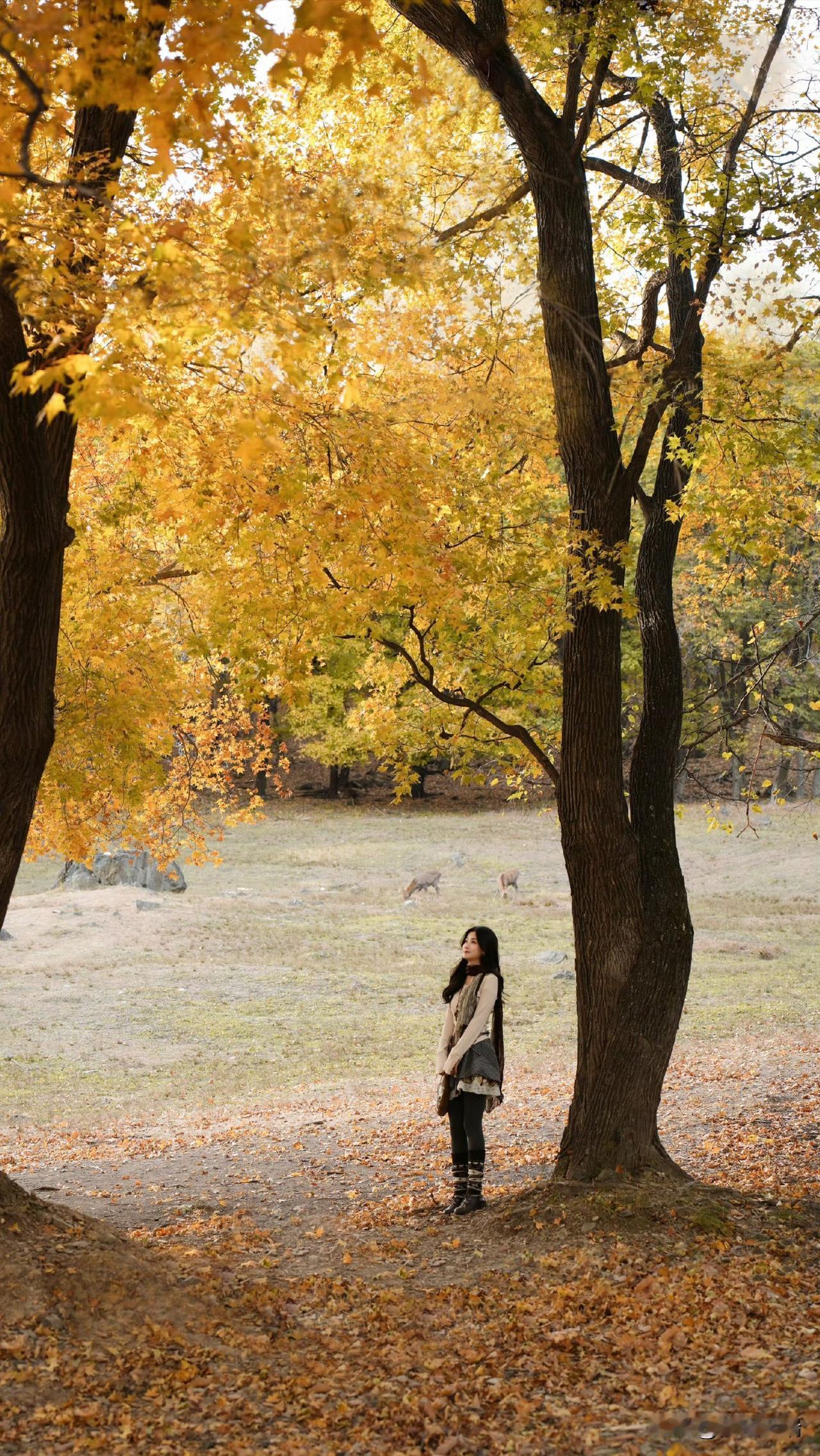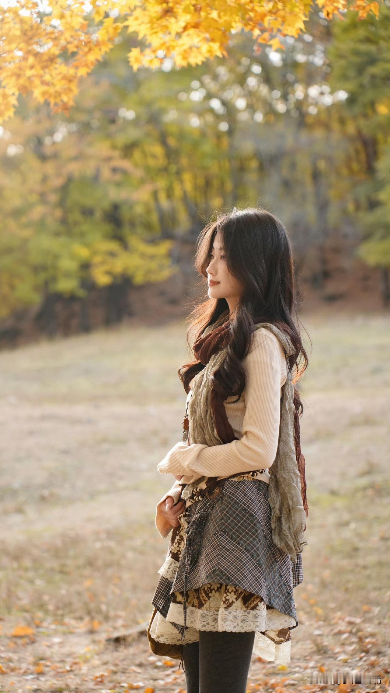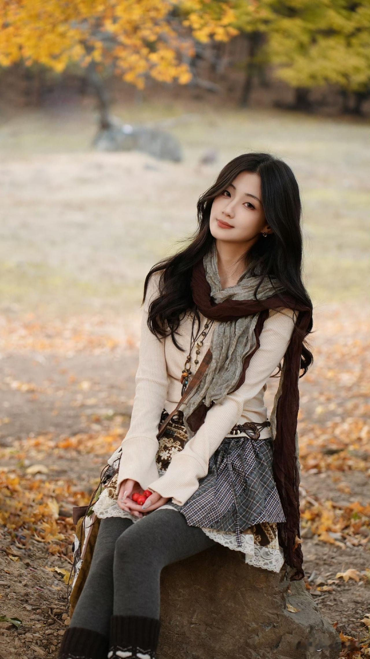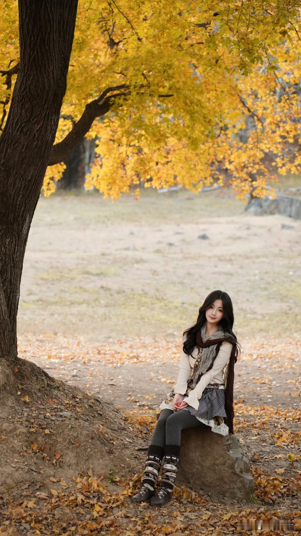 秋日暖阳下,少女静坐树旁,岁月静好。