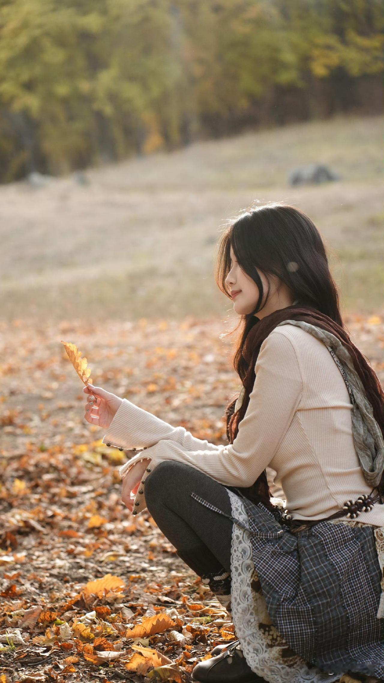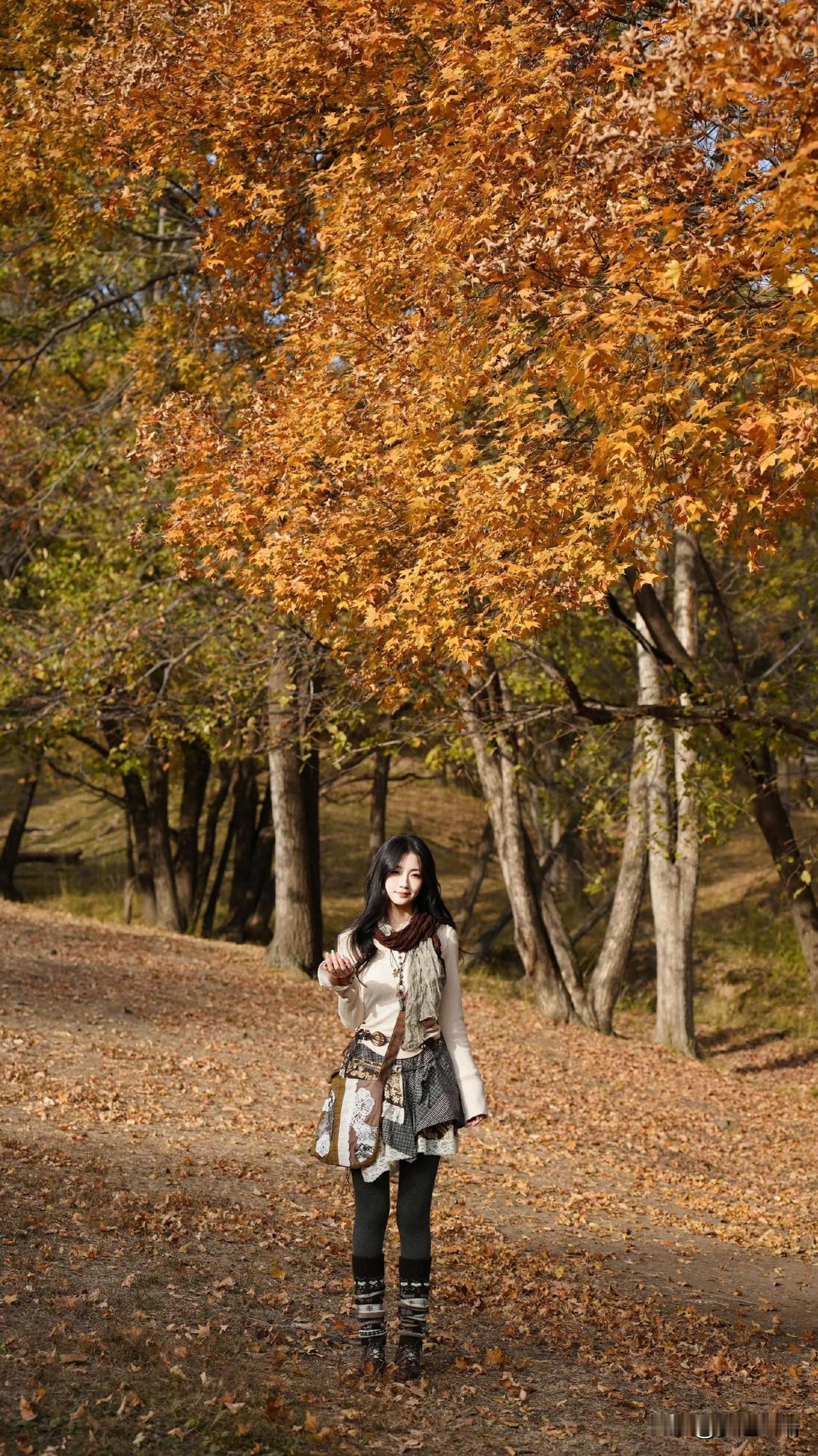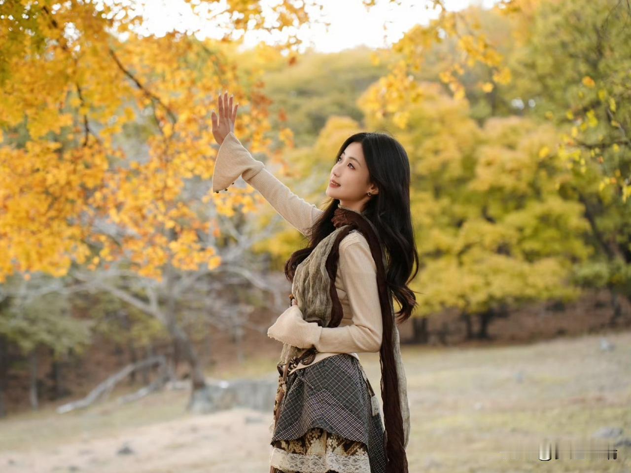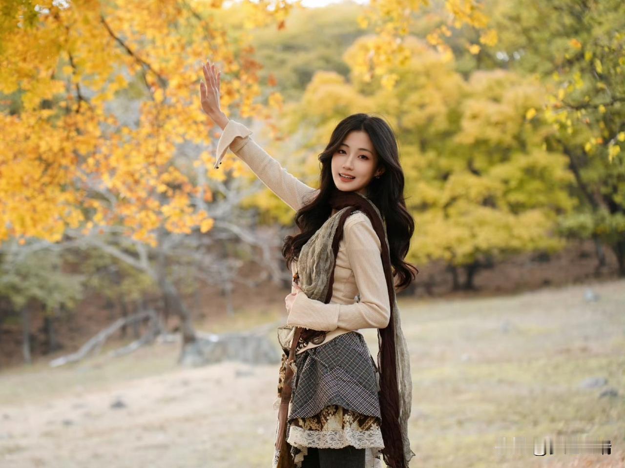 秋日暖阳下,少女静坐树旁,岁月静好。