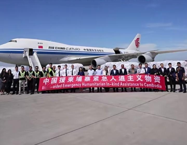 中国首批援柬紧急人道主义物资已经运抵金边。 这批物资包括帐篷、毛毯和食