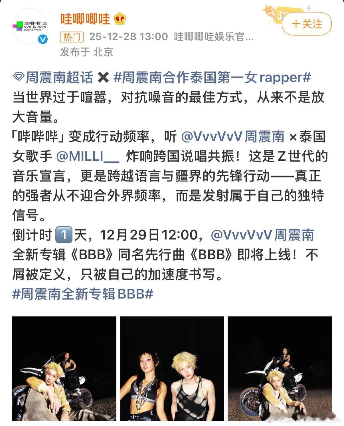 周震南MILLI跨国说唱顶级过肺 周震南人气和实力都不用多说,MILLI在国际舞台上也已经证明过自己,这次合作既是文化交流,也是实力对决,太想看成品出来那一刻了。