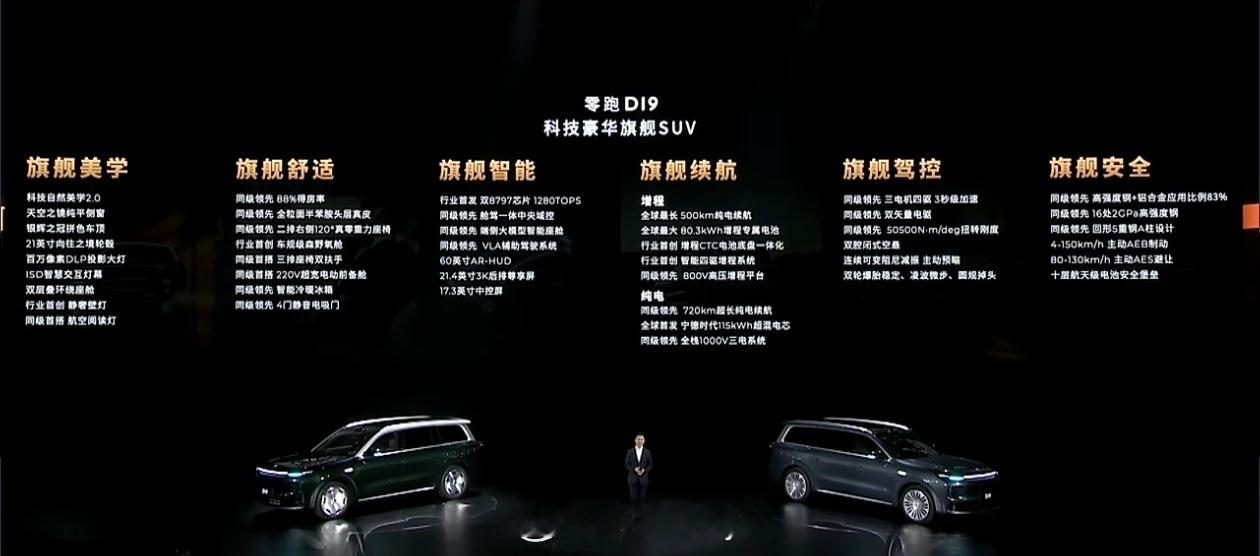 零跑10周年发布会,看零跑D19。作为科技博主,肯定最关注科技创新,VLA辅助驾驶系统,防御性驾驶守护安全,车位到车出行更惬意,凭借起飞的销量,组合自研的决心,零跑稳稳的。零跑汽车十周年零跑9系豪华双旗舰同台首秀续航方面,增程版本大电池,充电快,增程500公里纯电续航猛不猛,这回油箱真成备份了,平时纯电妥妥的。相对的纯电版本也很猛,115kWh大电池,充电频次实打实的降低。全栈高压纯电系统严寒也能稳稳行驶,如果我提车了,明年一定开着它去东北。当然,别看D19个头,它操控可好着呢,毕竟是零跑调校,三电机四驱猛的很,更有双矢量电驱打配合,舒适配置也全面打满,硬实力足真舒适。LMC 2.0底盘运动融合控制,全面调度整车,带来舒适常在。至于安全一直是零跑的核心,九横三纵四连环笼式车身结构定义安全守护,更有主动安全充分介入,将风险化于无形。电池安全也经得起极端验证,毕竟旗舰车型,承载了更多重任。 杭州·杭州奥体博览城