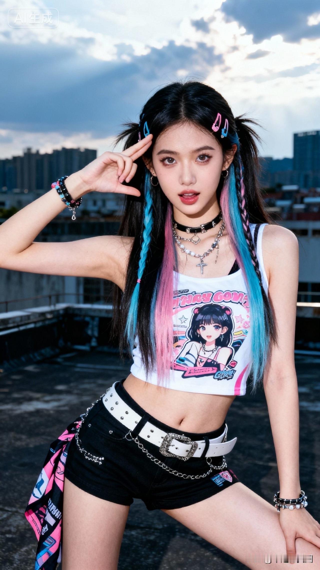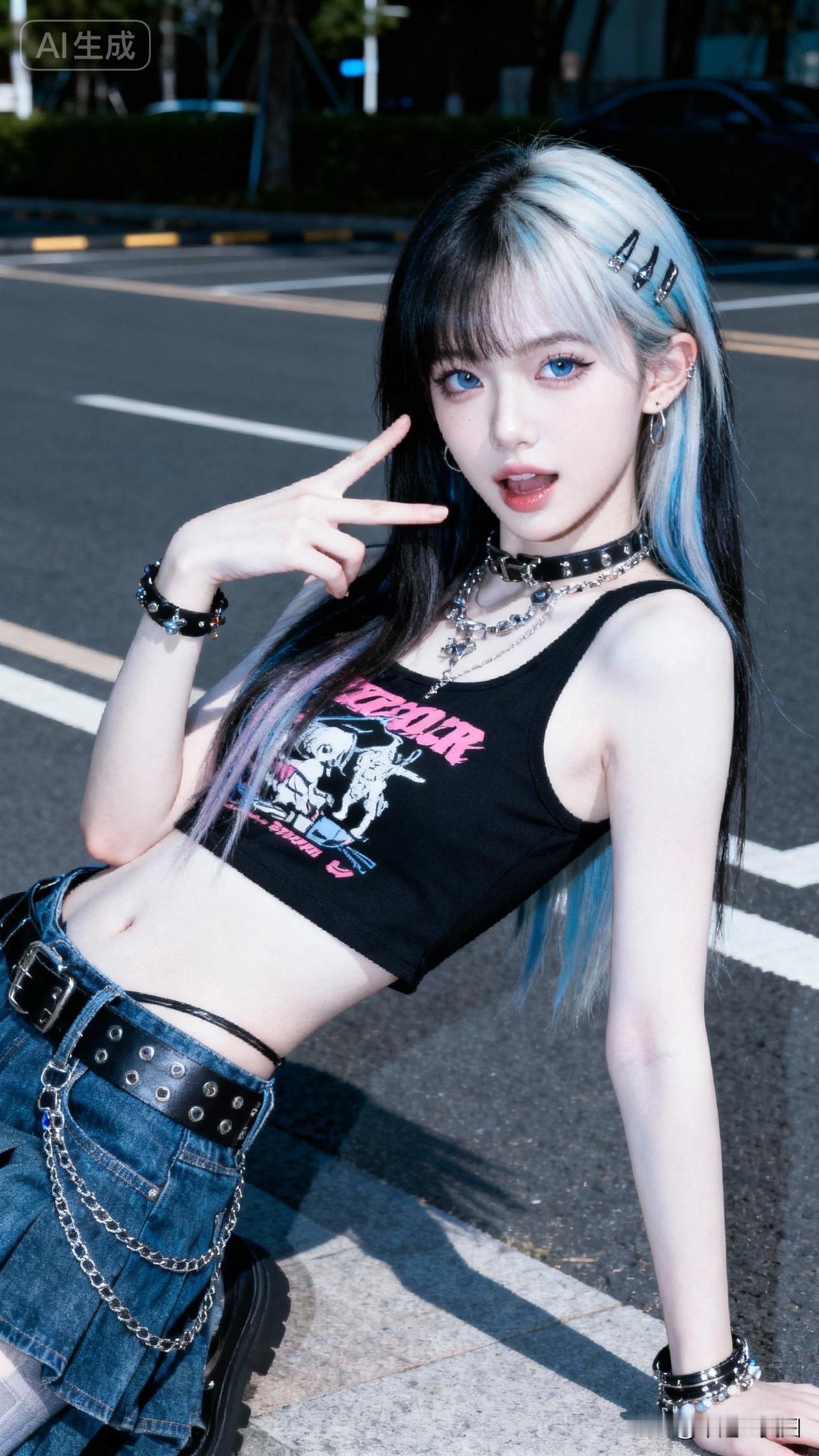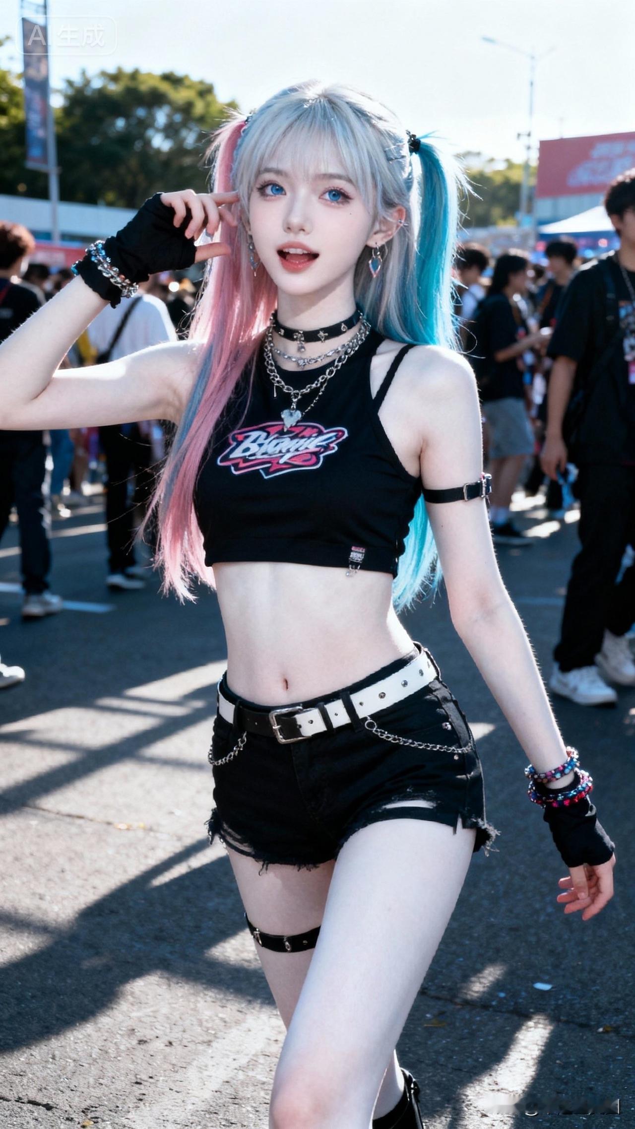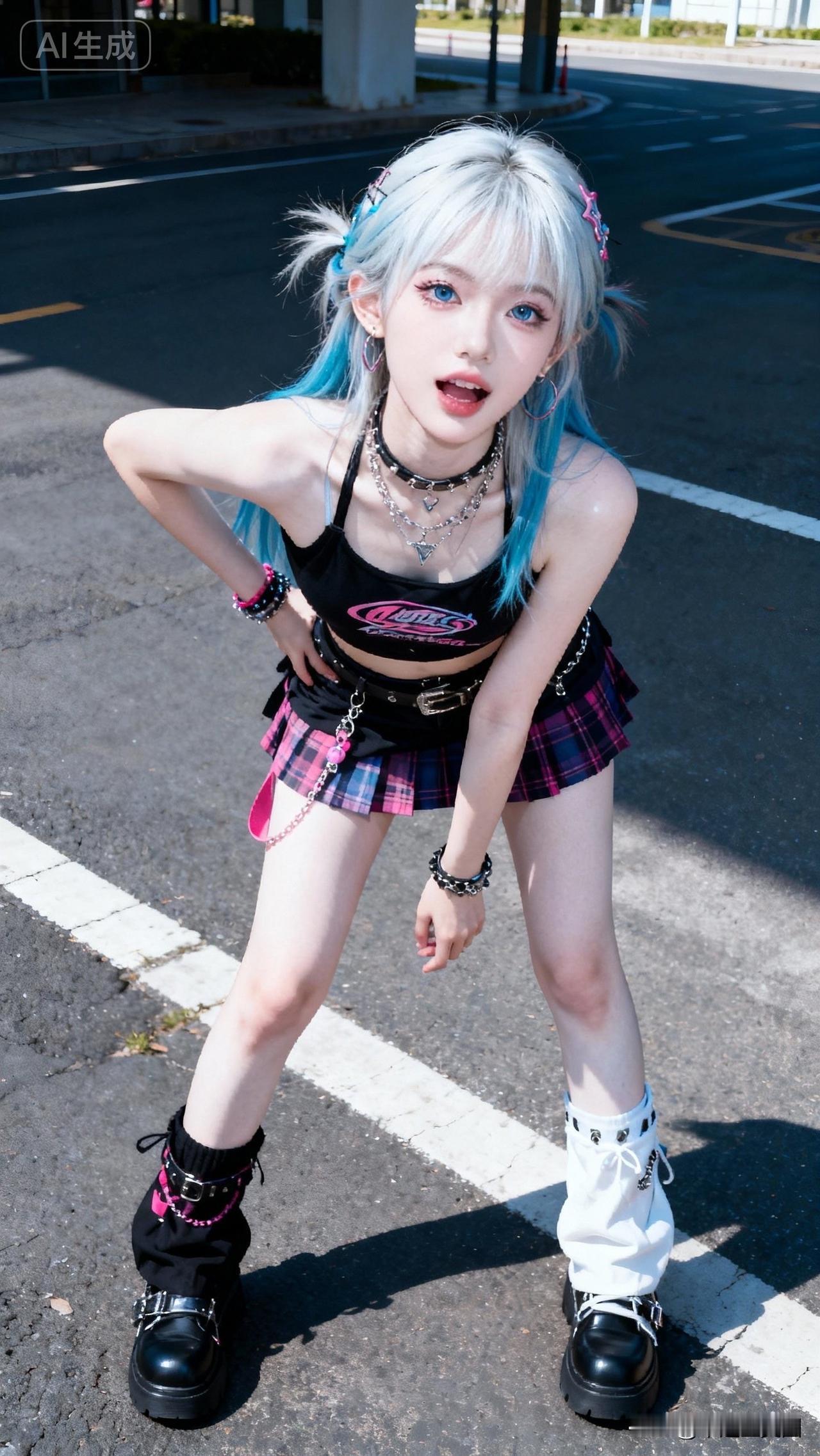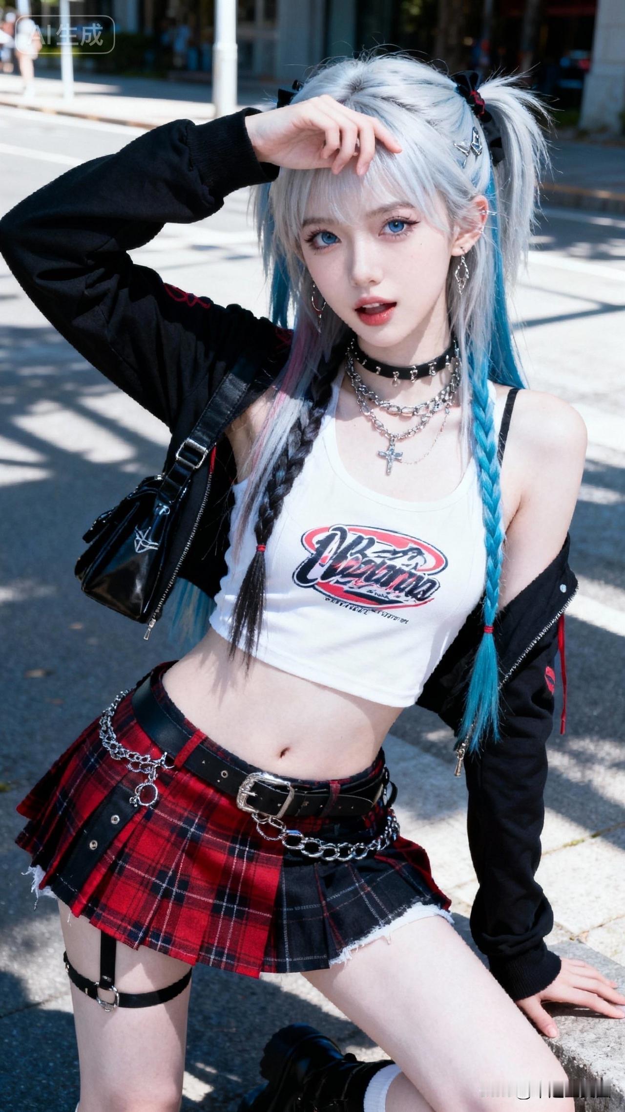 元气少女街头穿搭,粉蓝双马尾,酷炫又可爱!