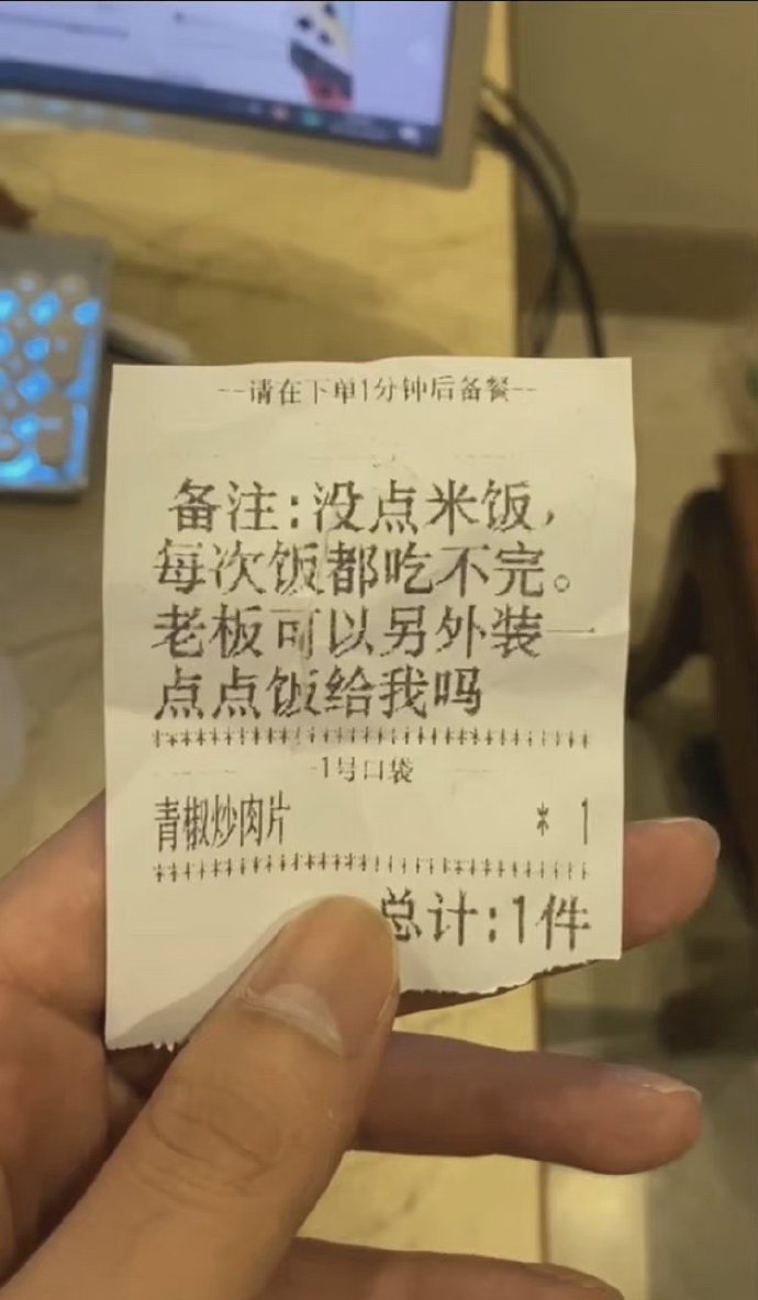 点外卖备注只要一点点饭时 今日最搞笑来了。真就是一点点饭。真的要笑死人了