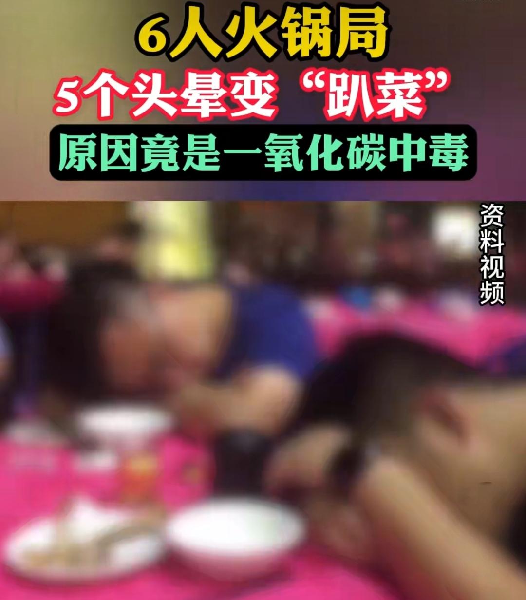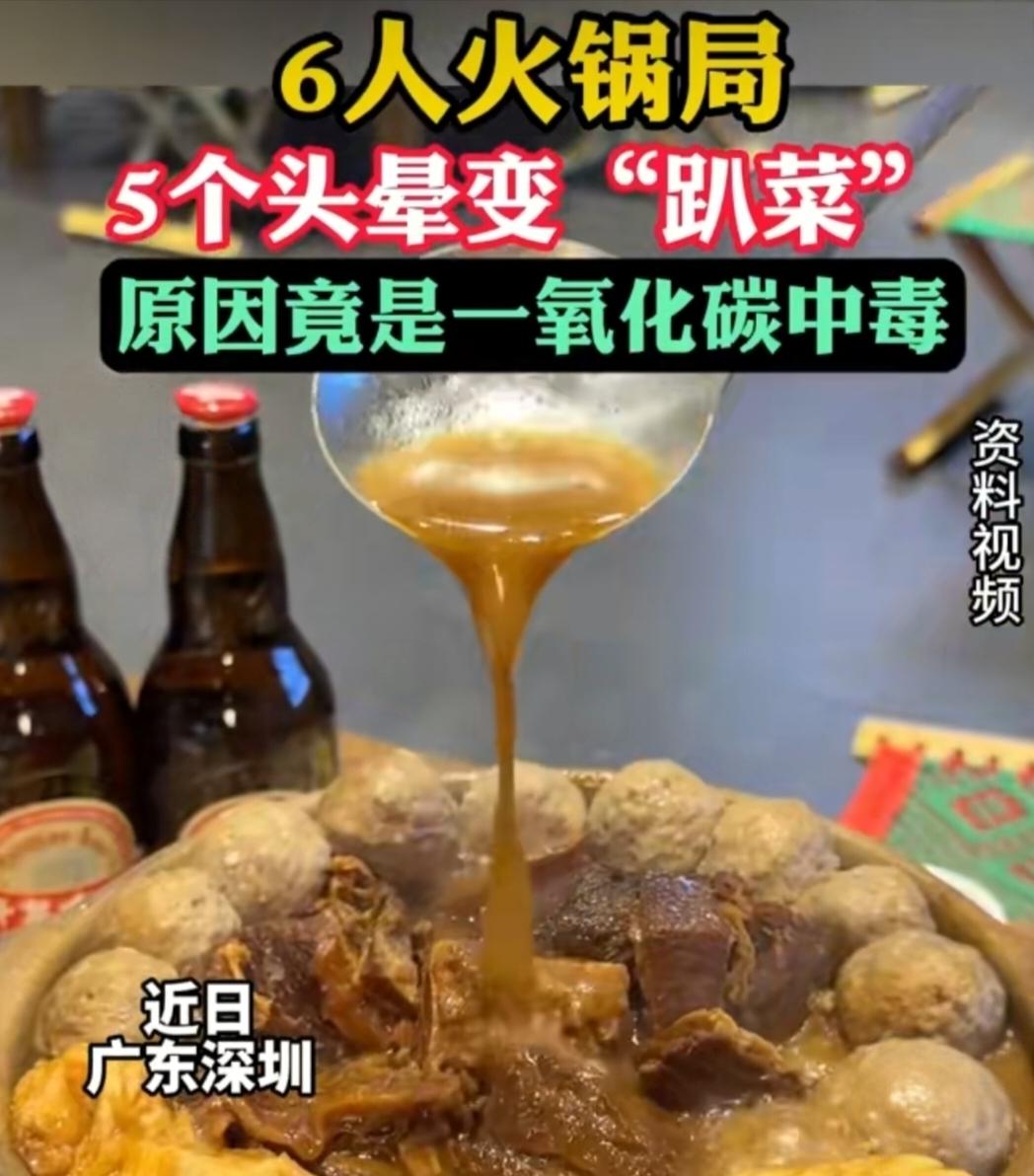6人吃火锅5人倒下剩1人报警!以为是喝醉,实则一氧化碳中毒。 深圳这事儿太吓人了!11月9日晚上,宝安区松岗街道的一间宿舍里,6个好友围炉吃火锅,从下午6点吃到晚上9点,几瓶酒下肚后,有人开始恶心呕吐,接着一个接一个趴在桌上“睡觉”。 唯一没喝酒的张先生一开始以为大家是喝多了,直到自己也头晕想吐,才发觉不对劲,赶紧打了120报警。原来他们吃火锅时觉得热,把门窗全关了还开了空调,导致一氧化碳聚集,这才引发了中毒。 张先生跑出房间后症状很快消失,而另外5人被送医治疗,好在最后都康复出院了。想想都后怕,要是张先生也喝了酒,没及时发现异常,后果不堪设想。 深圳急救也提醒,秋冬聚餐用炭火火锅、热水器这些,一定要保持通风,别被“温暖”的环境给坑了。这事儿也给大家提了个醒,聚餐开心的同时,安全可千万不能忘!聚餐 一氧化碳 中毒
