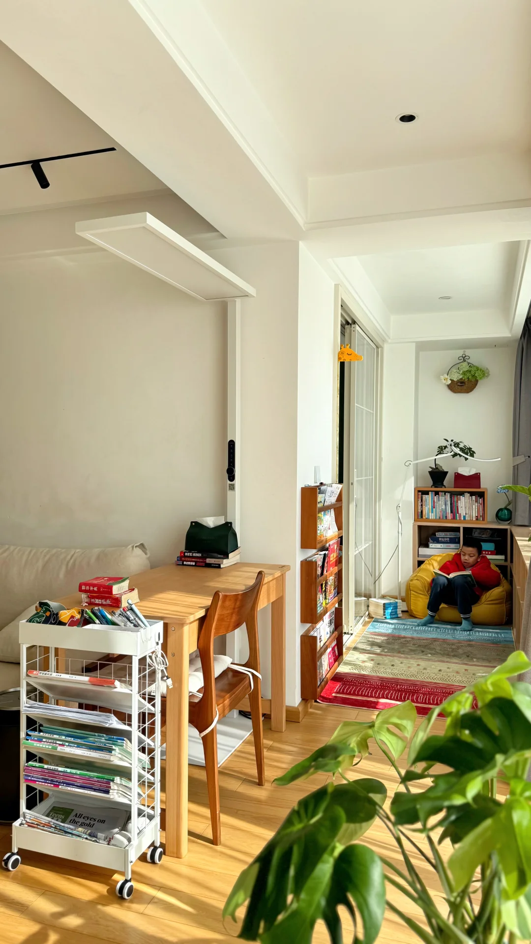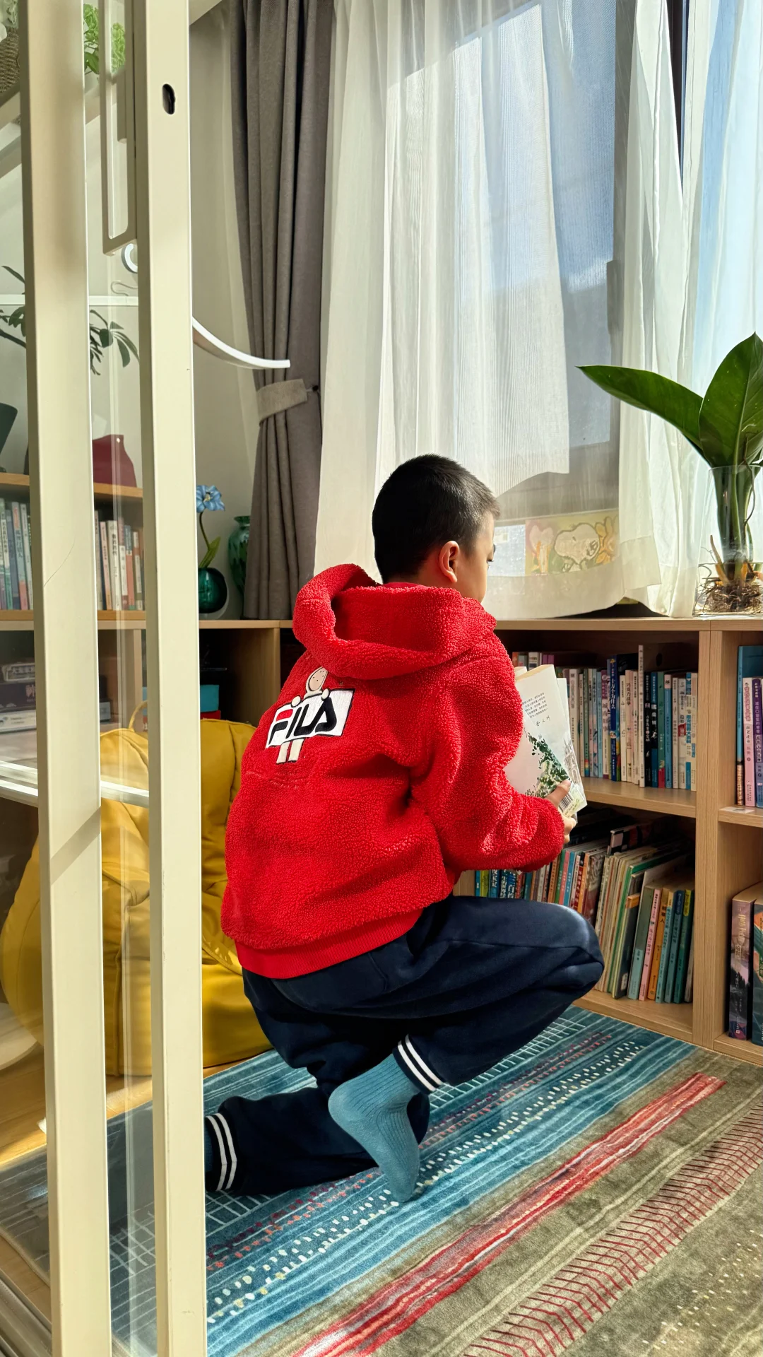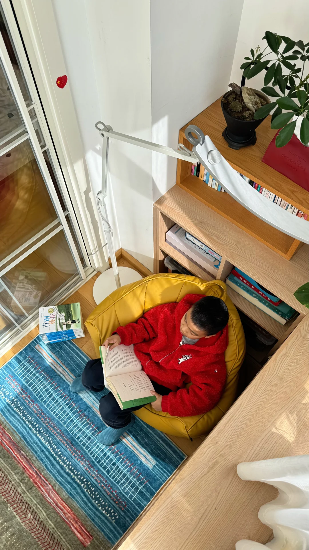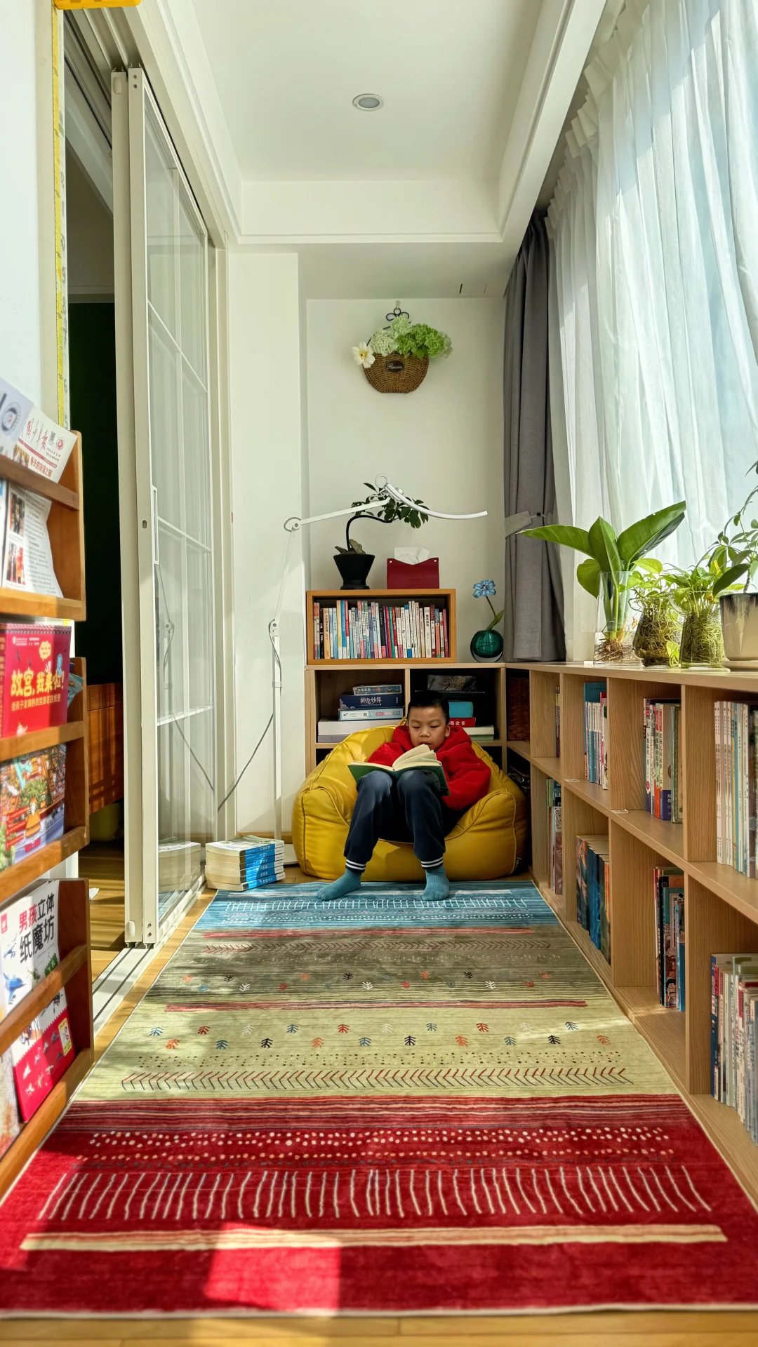 二楼的阳台,光线好到爆💥 每遇冬天的阳光,就觉得好幸福啊 今日周末宅家,孩子一早起来写了会儿作业 就在阅读角看书了 看到他认真看书的样子 心里好满足❤️