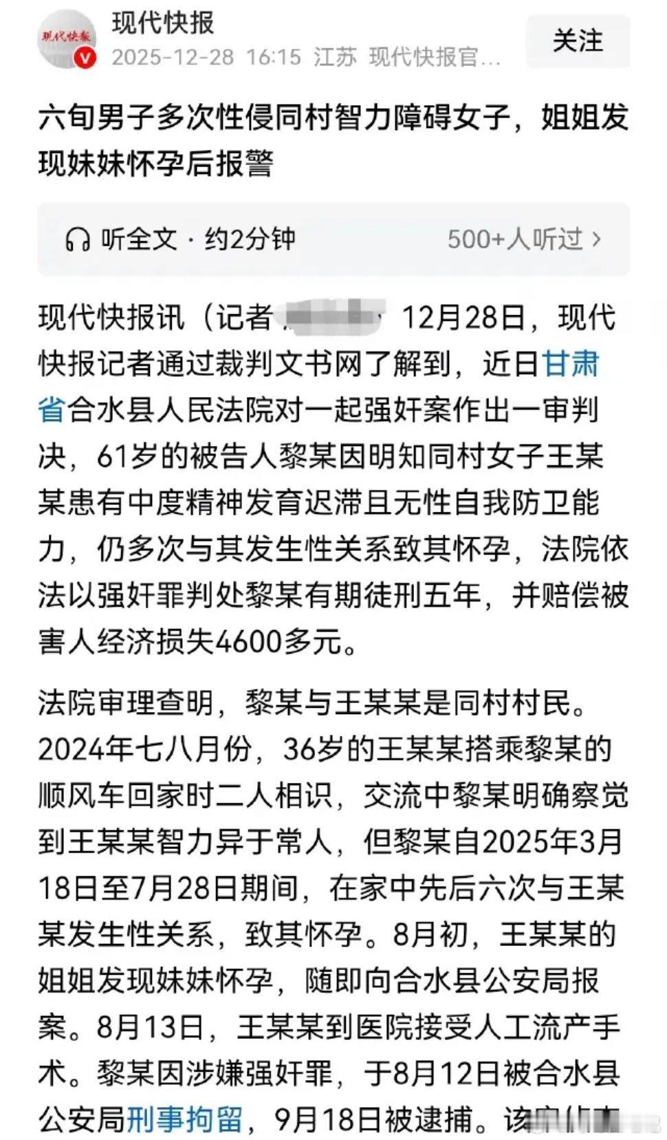 六旬男子性侵智力障碍女子致怀孕真心希望这事儿能狠狠敲醒所有人——多盯着点身边的弱势群体,多给点实实在在的看护和尊重,别再让这种毁人一辈子的悲剧重演了!