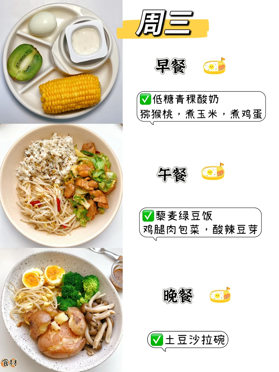 生活化减脂食谱,每一餐都不超过400大卡‼️ 搭配方法: ✅碳水:200-250克 ✅蛋白质:100-180克 ✅蔬菜:300-400克 ✅水果:100-200克 ✅牛奶200ml,无糖豆浆250ml,鸡蛋1-2个 ♨️把最最想吃的放在早上,每天摄入1200大卡,加上适量运动,想不瘦都难‼️ 一定要吃的干净,按时吃饭,好好喝水,建立良好的生活作息和习惯,并好好坚持哦‼️ 🔆🔆节后放纵餐分享给你们~