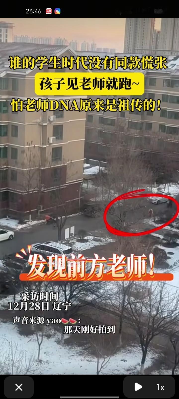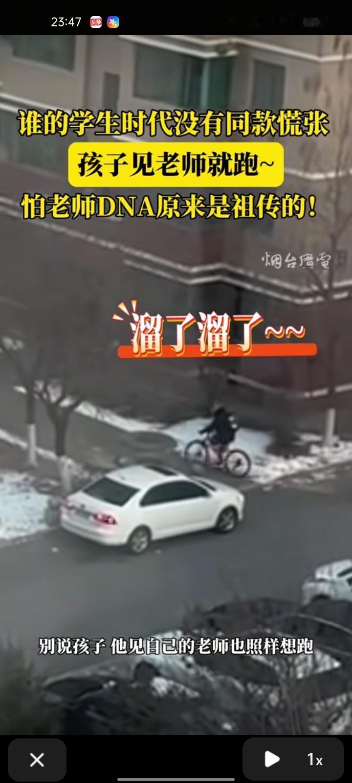 12月25日,辽宁营口。女子晒视频称,拍摄孩子骑自行车上学的视频时,刚好拍到他看见老师就跑,觉得很有意思。随后,视频给老师转发过去,老师说:“别说孩子,他见自己的老师也照样想跑”