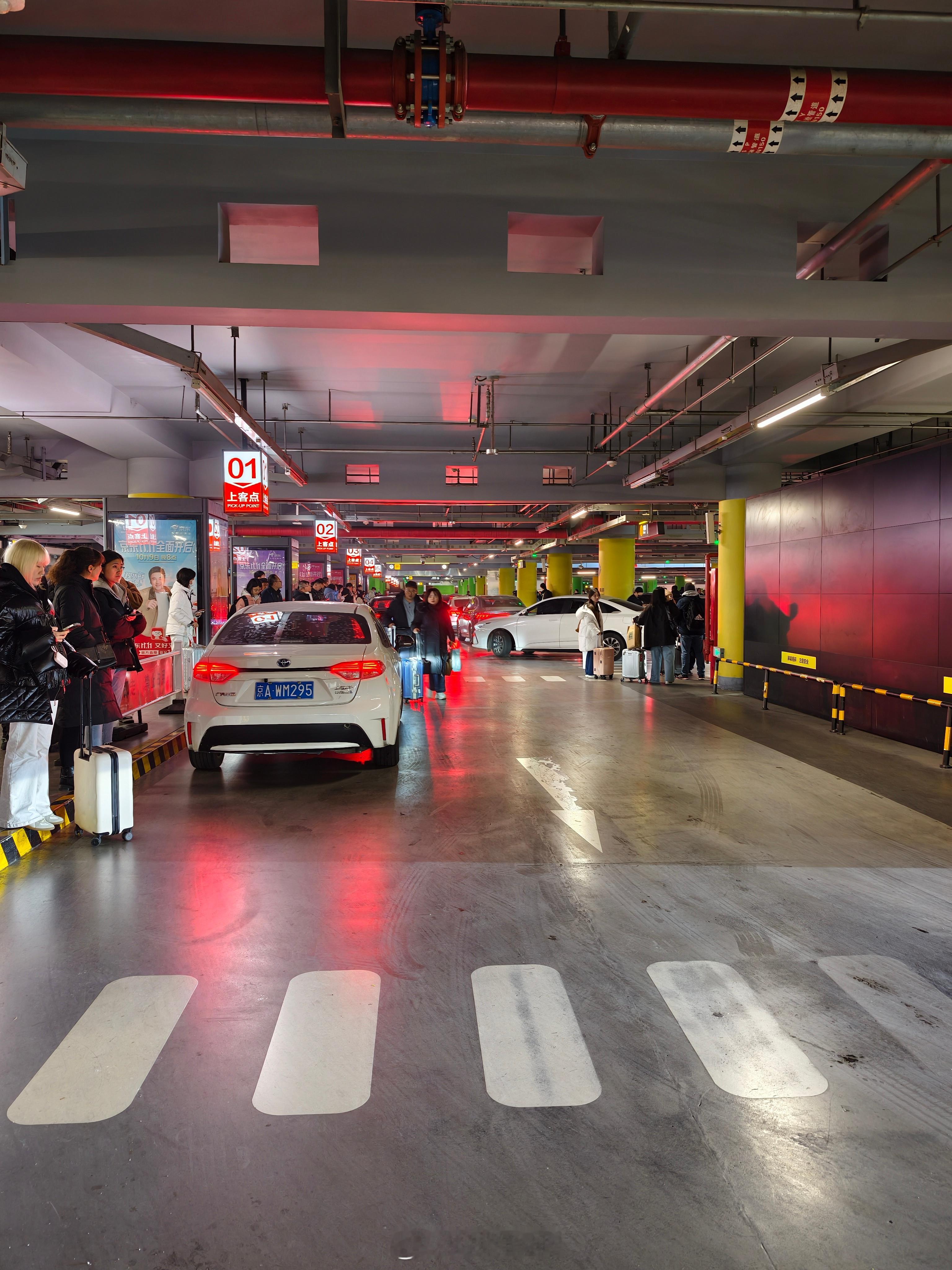 大晚上的,大兴机场停车场,这么热闹。感觉网约车通道应该多开几个,这样容易拥堵。