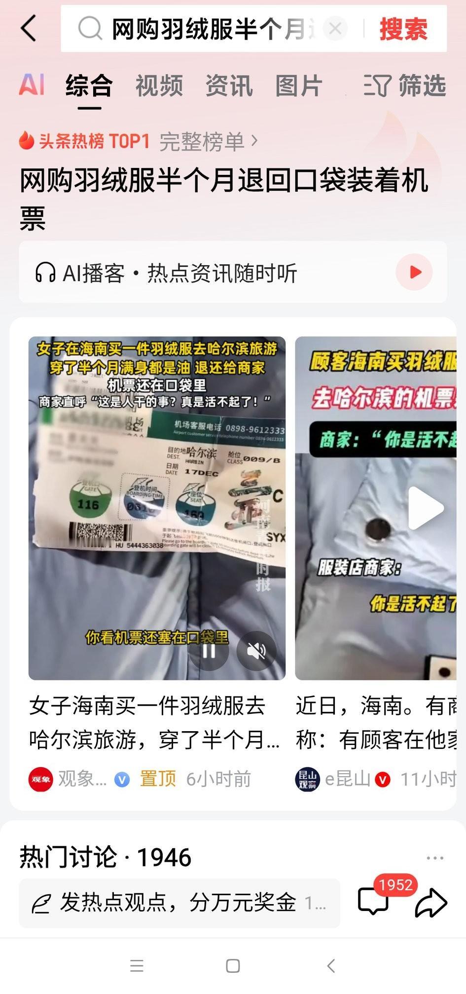 这网购白嫖党真的过分了! 海南苏女士网购近千元长款羽绒服,穿着去哈尔滨旅游半个月,把衣服弄成“战损版”,领口袖口全是污渍,回来竟以“尺码不合适”申请退款,兜里还揣着往返登机牌。 商家拒绝退款,她振振有词。平台把款退给她了! 商家也不好惹,咽不下这口气,曝光了她的信息。 这下好了,全网都知道了,她也算白嫖出名了!以后别人都知道她了! 做人做事千万不能为了小利丢掉诚信与良心呀!