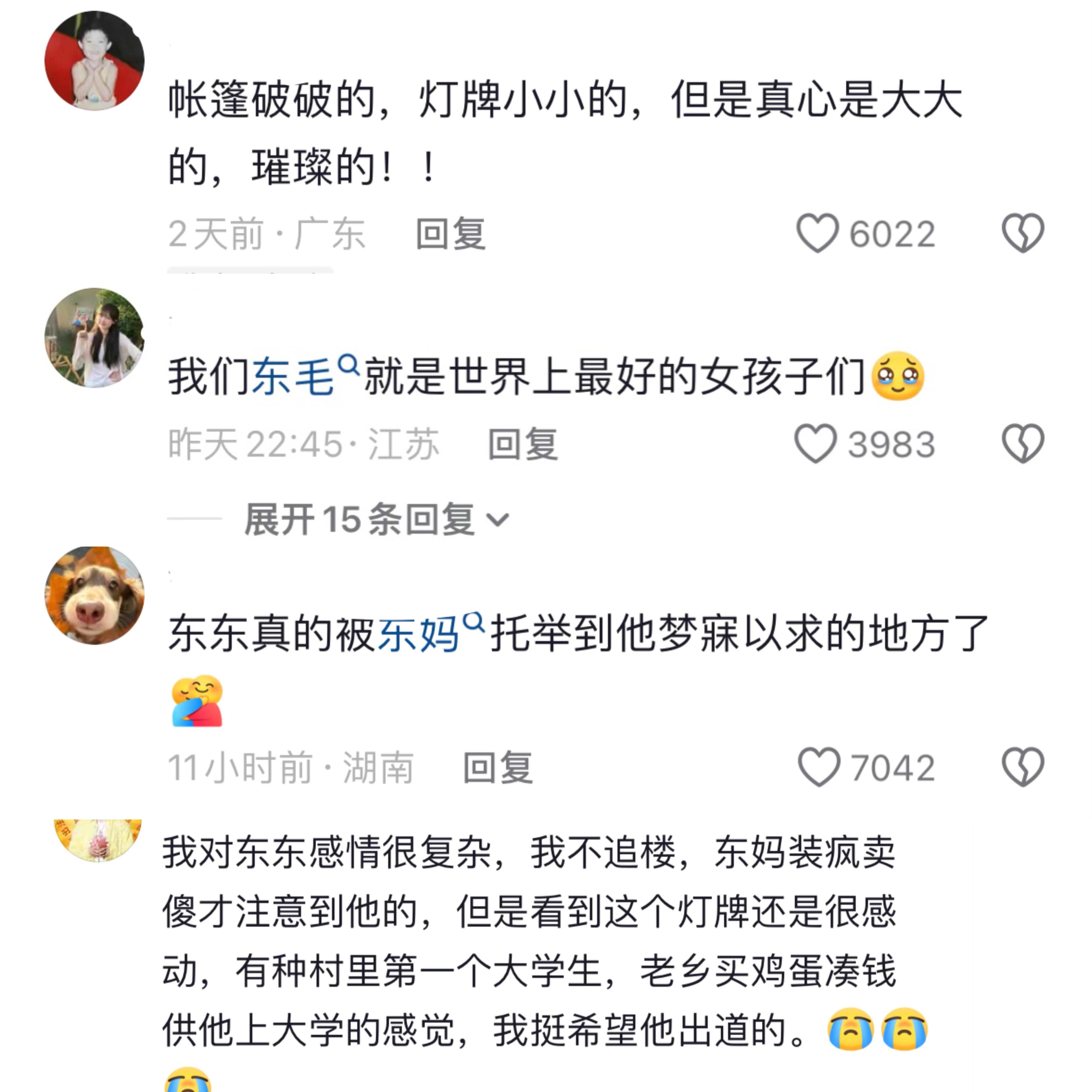 在东毛这里,我真的懂了爱是托举这句话,总有人说东毛装疯卖傻,说东毛好笑,可我知道你们都是一群年纪小小的女孩子们。只是为了爱,为了李煜东,拼尽全力想要托举他到更高更远的地方让他看到更好的风景。真的辛苦每一位线下的志愿者们和每一位为了东东走到这里的宝宝们,新音你们夸了东东太多次,这次,你们夸一夸自己吧,你们真的很棒🥺