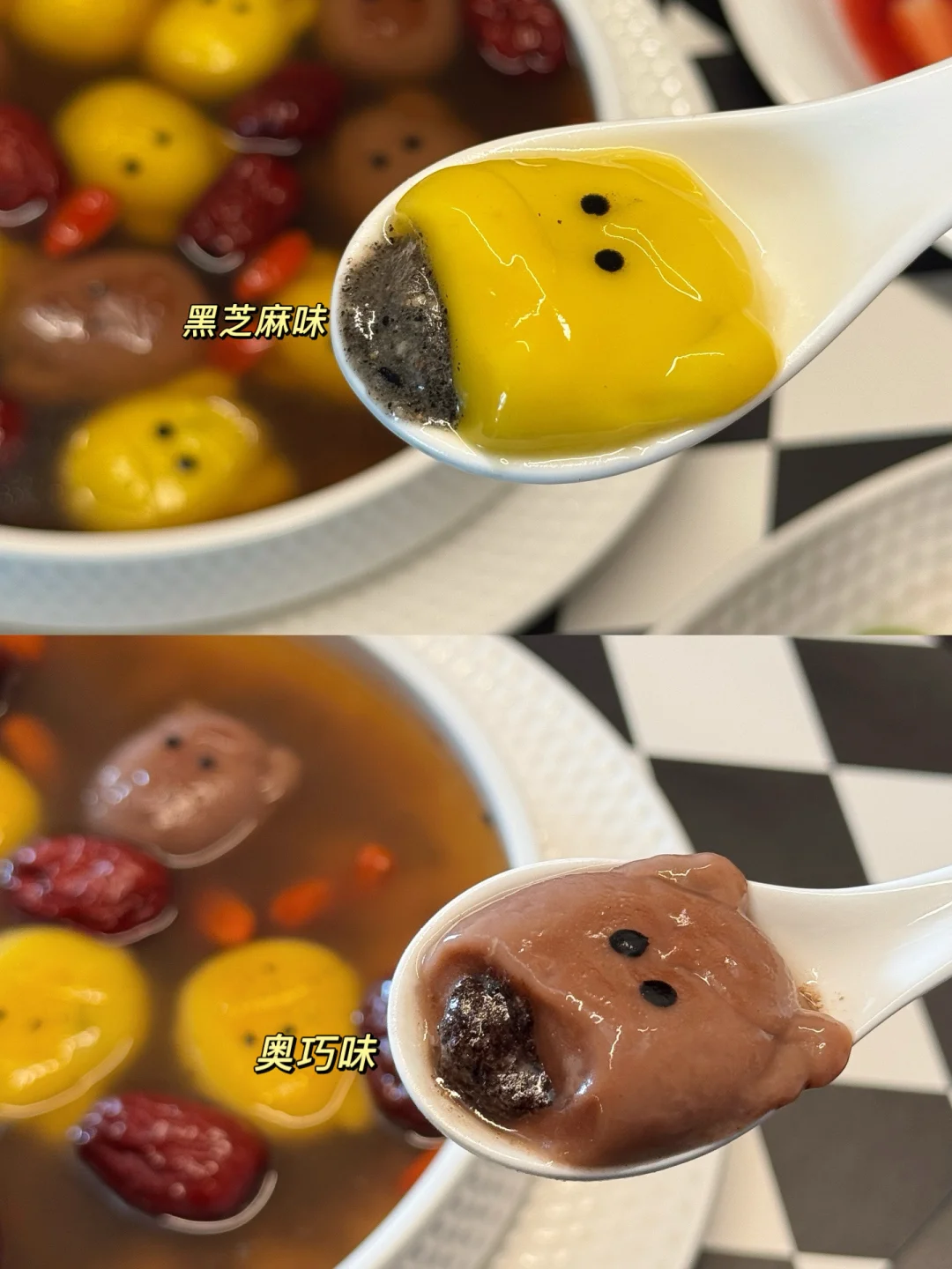 一共两种口味,黑芝麻的我心头爱,醇厚的芝麻香裹着核桃瓜子粒粒酥脆的坚果香,软糯外皮 内馅香甜是记忆里最经典的团圆味道,新品奥巧口味味道也很赞,丝滑的巧克力酱混着香脆的奥利奥碎,甜而不腻的口感层次分明,一口就戳中年轻人的喜好,小朋友也是一口一个抢着吃[大笑R]