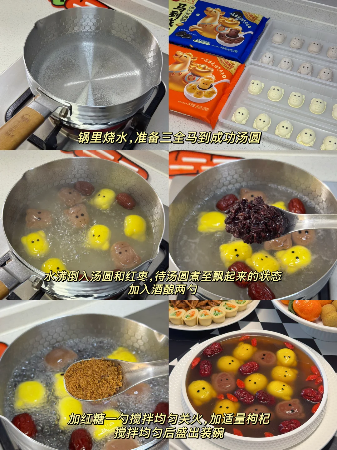 家宴 家宴是招待朋友的最高礼遇 三全 三全汤圆 马到成功汤圆 一口吃出黄金马 马上有好事 一代人有一代人的汤圆 马年就吃马汤圆 年夜饭菜谱
