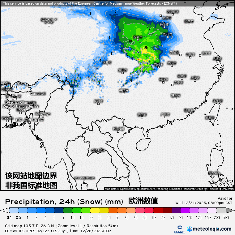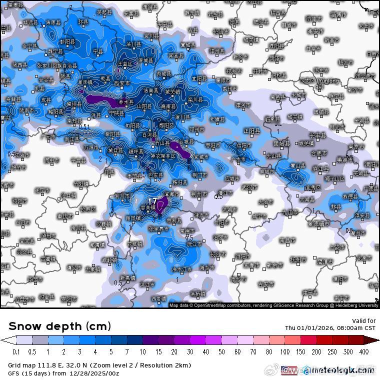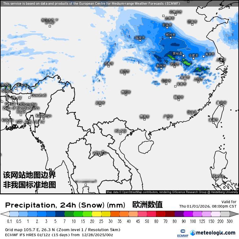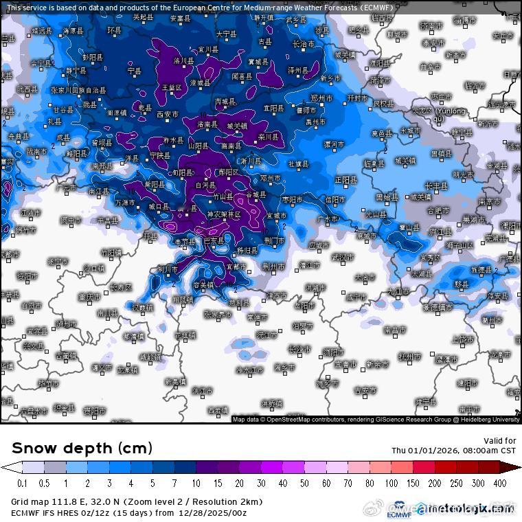 【跨年雨雪酝酿中】昨晚到今天,我国降水不多,零散且强度弱。今晚到明天,东北三省东部有匆匆而过的降雪。西南地区的阴雨开始增多。后天西南地区的降水进一步增多,拉开跨年降水过程的序幕。12月30日晚-1月1日,黄河以南地区将出现一轮大范围雨雪过程。目前数值预报对这次过程的降雪,依然有不小的分歧。西安31日下雪应该是有的,但降雪强度待定,临近根据低空温度的下降速度与数值预报对比检验,看雨雪分成比例,越早转雪,雪越大。反之如果低空实际温度比数值预报的高、下降速度慢,雨的比例高,雪就弱。另外郑州合肥南京这次降雪也不是完全保险。要看低空偏南气流能不能把水汽输送上去。由于冷空气从北方南下,500百帕上为西北气流压制,有干区南侵,降雪区出了陕西以后,东侧边界会向东南倾斜。郑州、合肥、南京都卡在边缘区,因此都是有机会,但不保证一定会下雪。目前欧洲报的暖湿气流相对强,因此图5和图7的模式对比,都比美国报的降雪区更偏北一些。但通常欧洲数值的暖湿气流预报偏强。后期关注实际南支槽强度和槽前偏南暖湿气流强度,如果实际不及预报,降雪区可能南,也就是向美国数值预报调整。因此后期的降雪分布还有很大变数。图8-9为欧美数值预报的1月1日08时积雪对比。因为对降雪强度预报的差异,导致积雪有较大差异。但在甘肃东部、陕西中部和南部、山西南部、河南西部、湖北西部和北部,均报出有积雪。元旦假期打算开车出游的朋友,要注意交通安全,警惕积雪和道路结冰的不利影响。