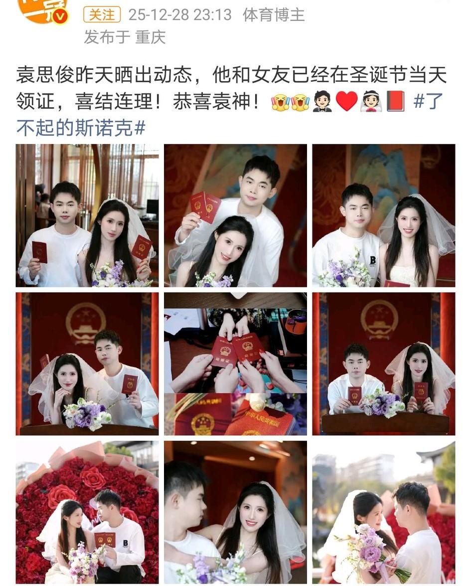 懂了,所以袁思俊赶紧结婚了…… 上一个领完证就夺得首冠,打进世锦赛16强的是肖国栋。 那天小果冻和他一起直播常冰玉半决赛时候还说,身边有人陪着,能帮助成绩提高。