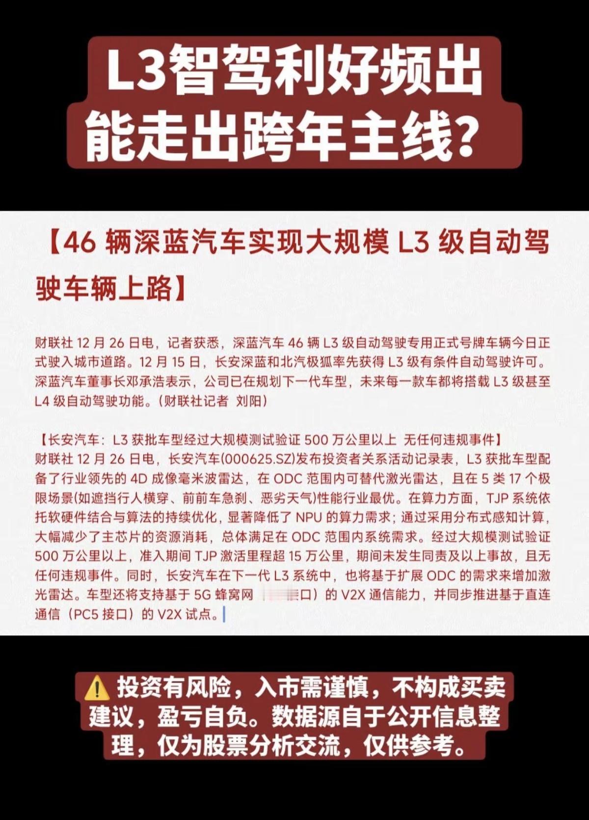 L3智能驾驶利好频出: 长安深蓝,北汽极狐再获牌照许可! 相关核心龙头股: