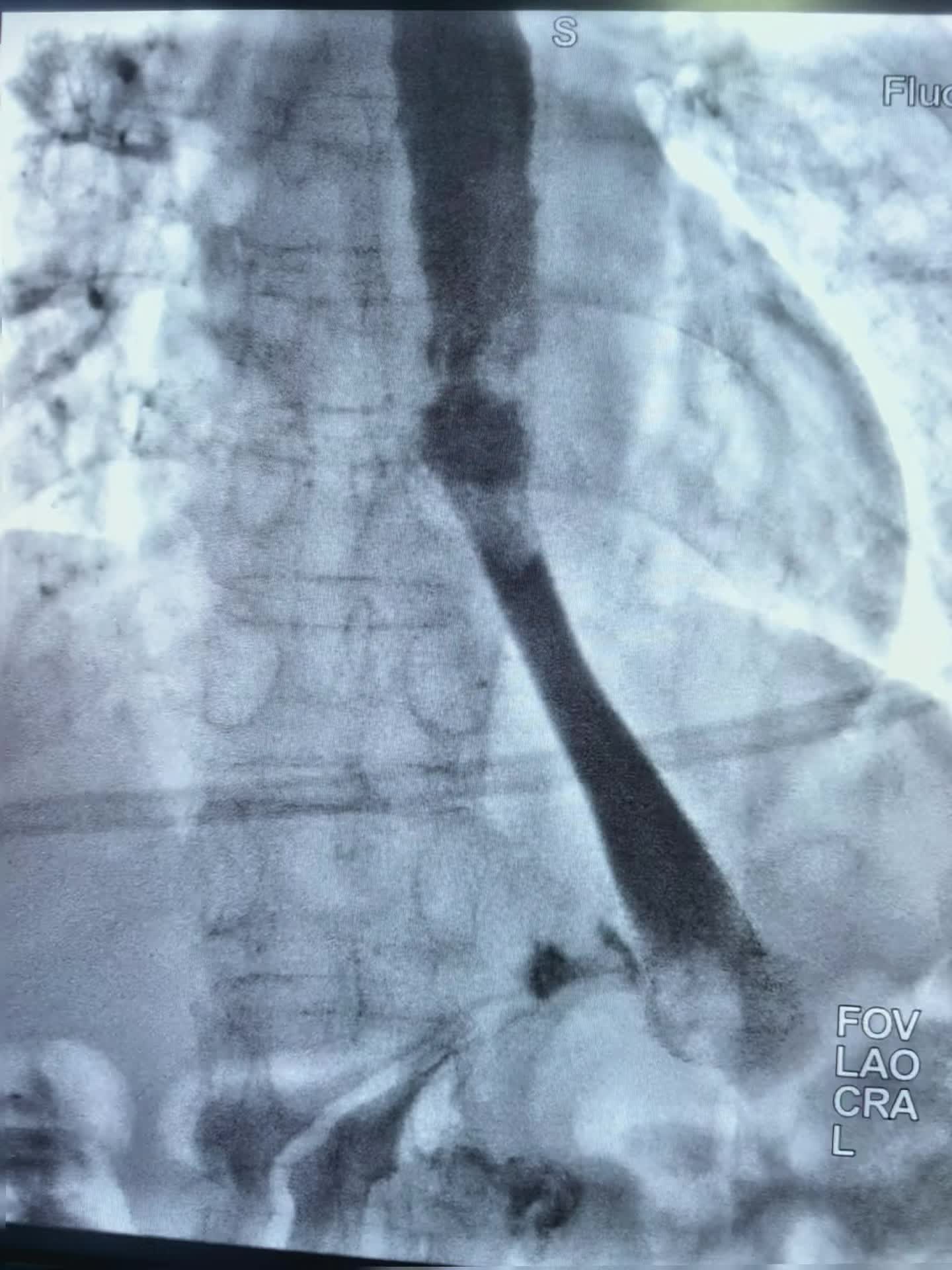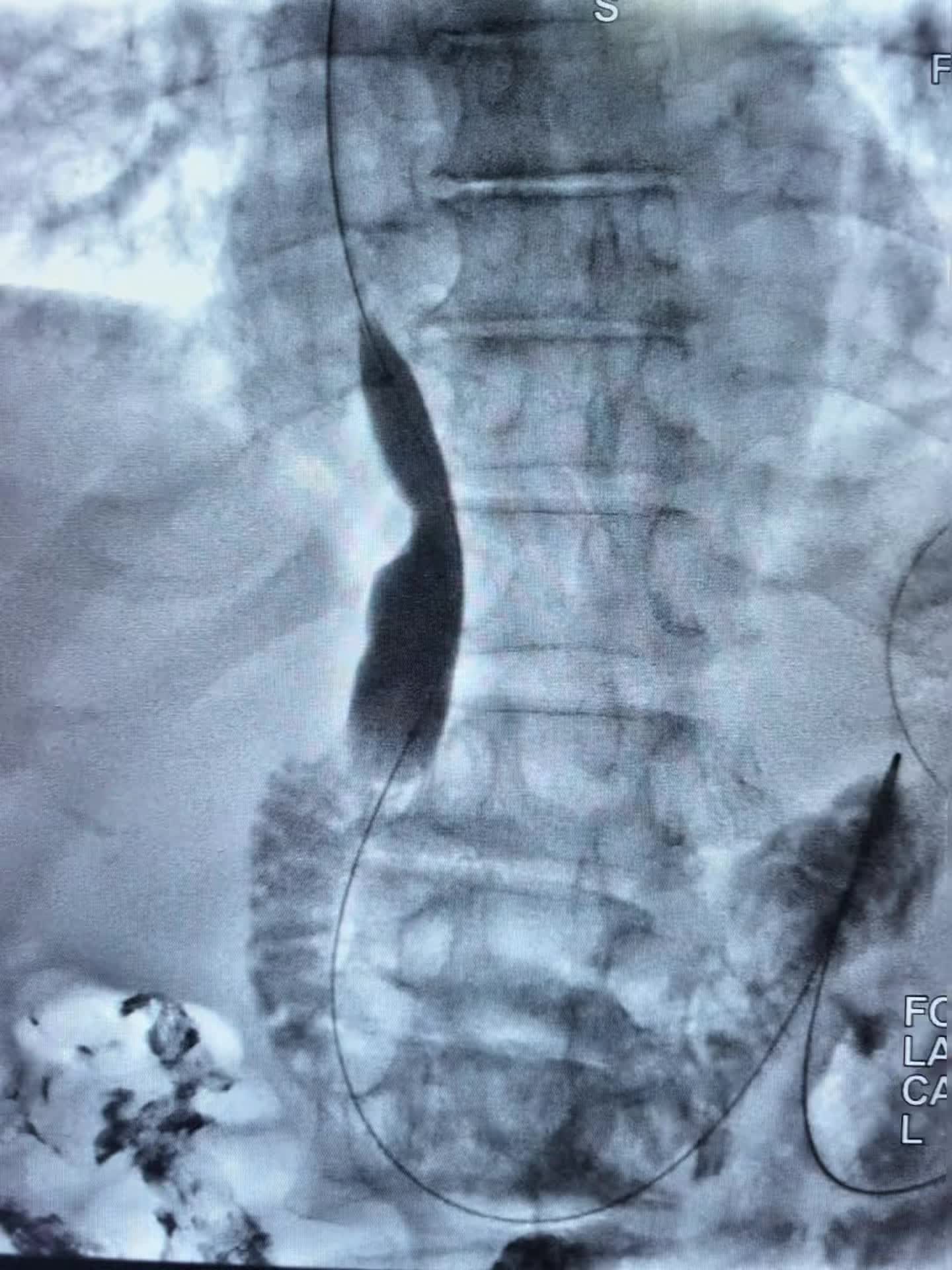 上午第一台78岁老年男性贲门癌患者,突发食管梗阻不能进食水,行球囊扩张,食管支架置入术,术即可恢复饮食。 第二台:食管癌术后3年再次进食哽咽,食管吻合口狭窄伴肠管膈肌处狭窄。单纯行球囊扩张术,术后即可恢复正常饮食。