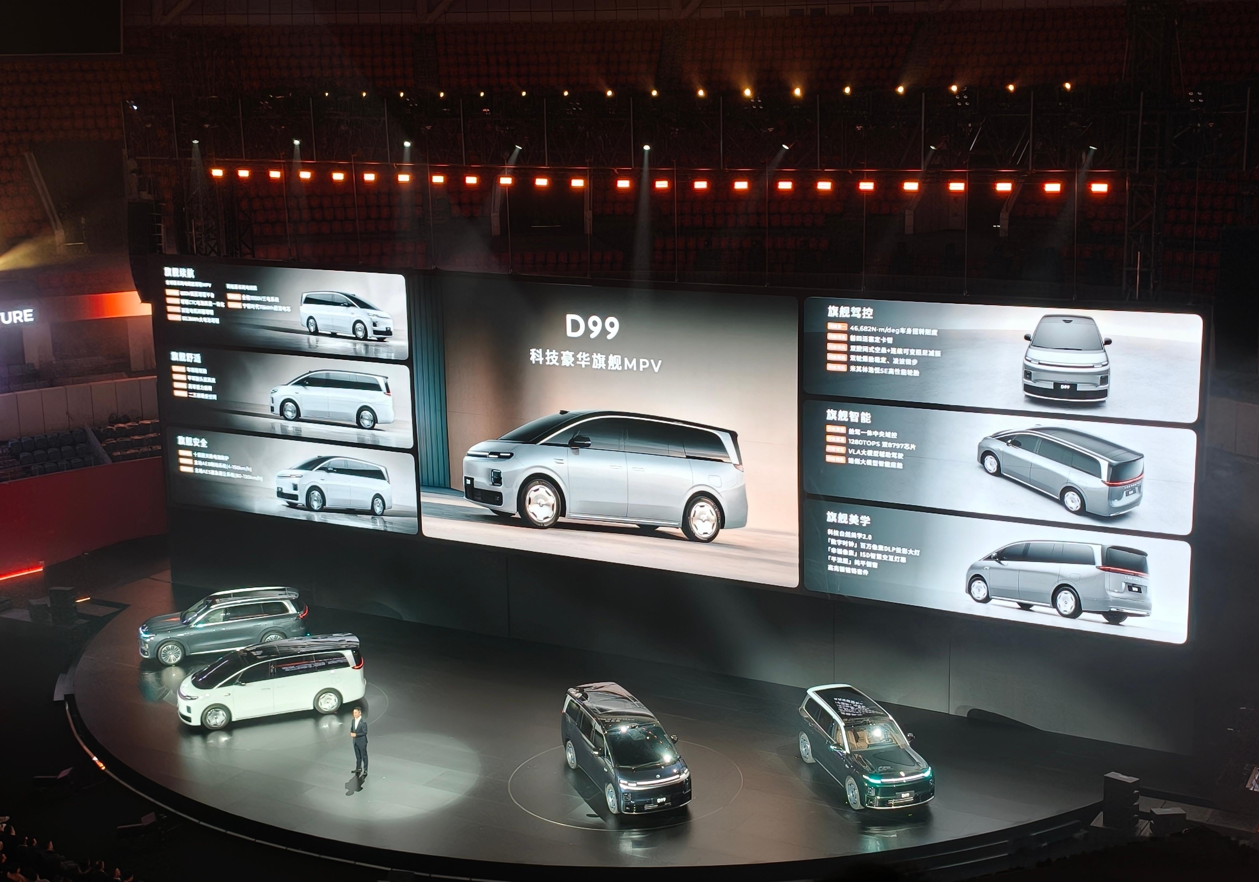你们敢想零跑也整MPV了,今晚上零跑D99也亮相了,定位科技豪华旗舰MPV,超5.2m车长、2m宽、超3.1m轴距,前脸AGS主动进气格栅,百万像素投影大灯,19英寸向往之境轮毂,车尾还有ISD智慧交互灯幕,光电白、液态银、辰境蓝、天幕灰、金属黑5个色,官方说会是全球最长纯电续航增程MPV,感兴趣吗