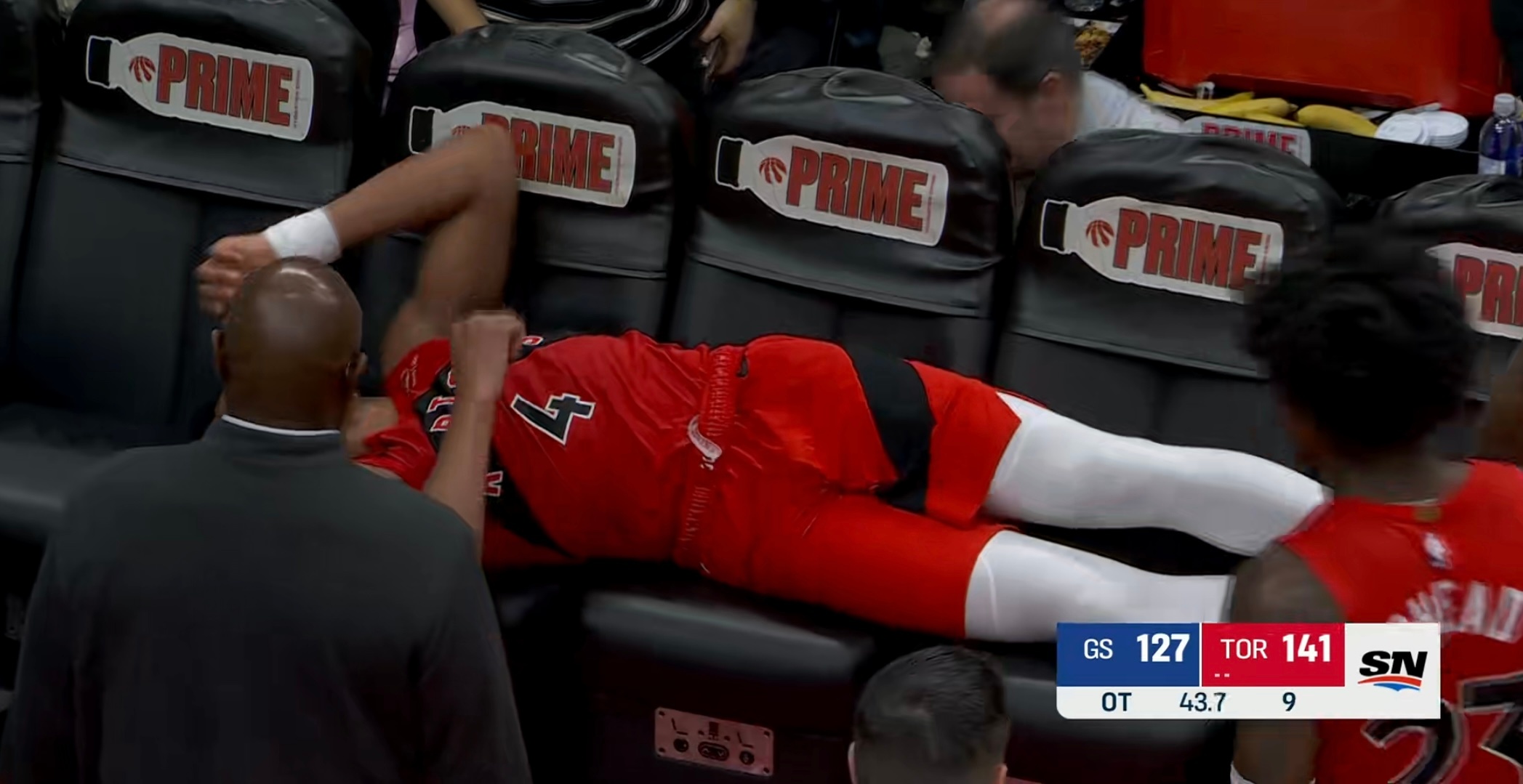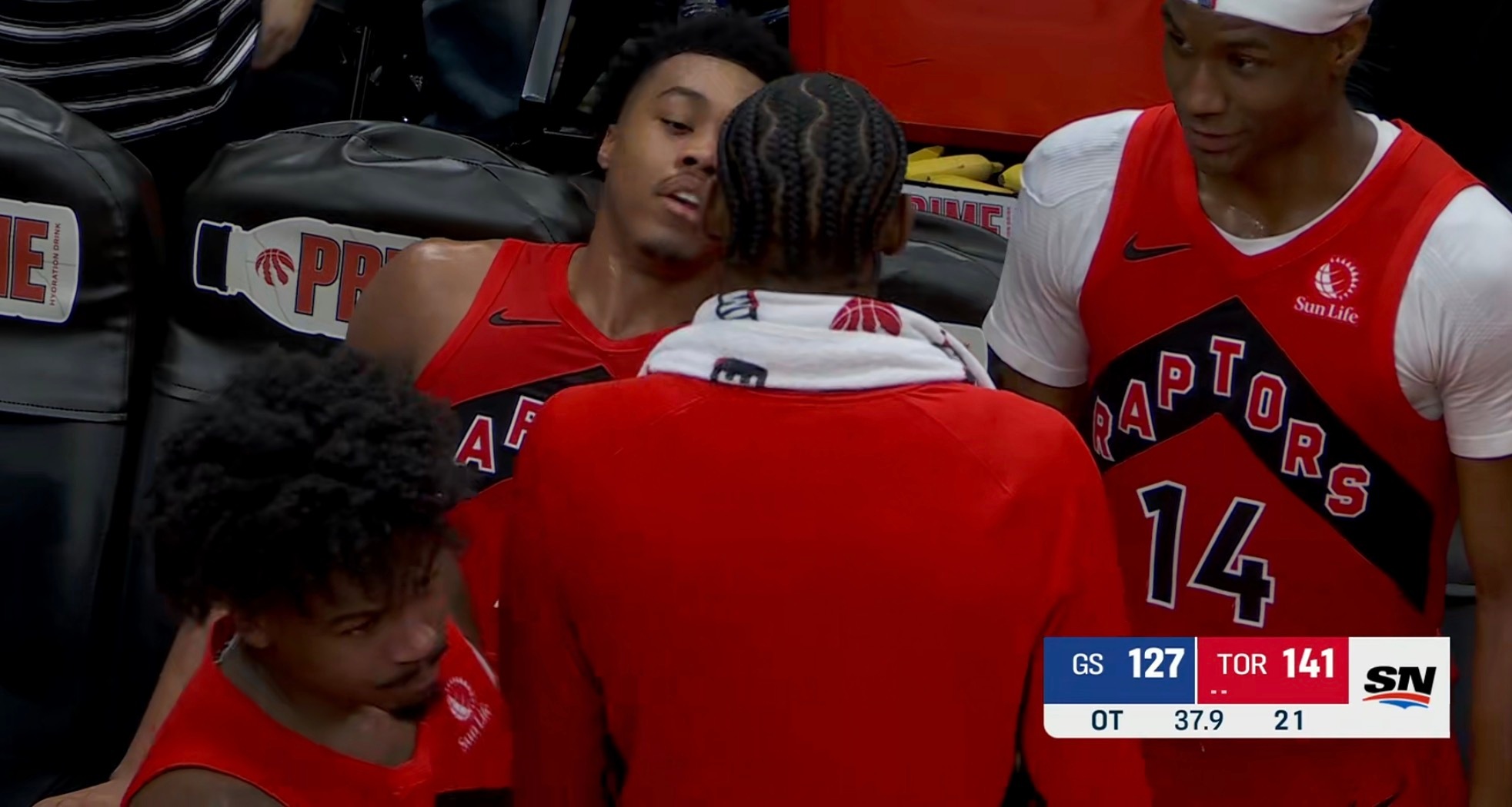 巴恩斯被换下场之后,直接累躺在椅子上。打了43分钟,23分25篮板10助攻,超级大三双,你猜为啥,还不是因为勇士的锋线矮运动能力不够啊,猛龙最后加时逆转勇士。