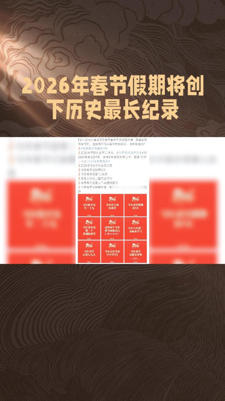 50天后便是除夕,这是中国人最重要的节日之一,承载着团圆与祝福的美好寓意。 随着2025年春节倒计时进入第50天,全国上下迎来了迎接新春的热潮。据最新报道,除夕当天,各地都将迎来大规模的庆祝活动。长沙作为春晚分会场,已经进入了全面的安保准备阶段,确保万无一失。与此同时,从古至今,春节的传统习俗丰富多彩,其中清代宫廷的“冬奥会”尤为引人注目。此外,2026年春节假期将创下历史最长纪录,达到9天,从2月15日至23日,涵盖了除夕至正月初七。这一特殊安排旨在让民众更好地享受春节假期,同时也带来了诸多挑战和机遇。无论是延续传统习俗还是创新庆祝方式,春节都在不断演变,成为连接过去与未来的桥梁。 除夕过年倒计时 除夕小常识