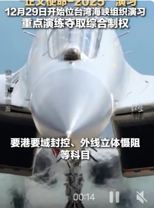 东部战区“正义使命-2025”演习启幕:利剑出鞘,只为守护两岸和平底色 12月29日清晨,台湾海峡及台岛周边海域空域,战舰列阵、战机轰鸣,东部战区“正义使命-2025”联合演习正式拉开帷幕。陆军、海军、空军、火箭军多兵种协同出击,从台岛北、西南、东南、东多个方向同步抵近,海空战备警巡、要港要域封控等实战化科目密集展开,用雷霆之势彰显捍卫国家主权的坚定决心 。 这场演习从来不是穷兵黩武的炫耀,而是对分裂势力的精准亮剑。近年来,“台独”分子一边将大陆列为“境外敌对势力”,限制两岸同胞正常探亲交流,一边跟风外部势力把防务预算提至GDP的5%,甚至附和“台湾有事日本有事”的荒谬言论,把宝岛当成谋私的赌注。他们看似嚣张的挑衅,实则是在把台湾民众推向危险边缘——当分裂分子勾连外部势力不断触碰红线,解放军的演训就是最直接的警告:“台独”之路没有回头路,分裂国家者必遭严惩。 屏幕里,舰机破浪巡弋的画面让无数网友直呼“热血又安心”。福建渔民说“看到军舰就踏实”,大陆电商盼着两岸生意如常,台湾网友也在社交平台喊话“要和平不要战争”。两岸同胞的心声高度一致:谁都不想打仗,都盼着走亲访友、共谋发展的太平日子。而这份和平,恰恰需要强大的国防来守护。解放军的演训越常态化、越贴近实战,分裂势力就越不敢妄动,两岸和平的根基就越牢固。 所谓“外部干涉”早已沦为笑话——29国无端指责却挡不住美军航母悄悄调头,台军公布的“监控照片”模糊到被岛内网友吐槽“像清朝遗物”,最精锐的战机竟空机亮相“表演”。这足以证明,任何企图阻挡祖国统一的势力,都如同螳臂当车。“正义使命”四个字重千钧,它不仅是军事能力的检验,更是民心所向的宣告:祖国统一是历史必然,是14亿人的共同期盼,任何分裂行径都终将被碾碎在历史的车轮下。 此刻的雷霆亮剑,只为明日的长治久安。当正义之师枕戈待旦,当统一大势浩浩荡荡,我们坚信,两岸同胞终将携手共圆复兴梦,台海两岸必将迎来永久和平。你是否认同“强大的国防才是和平的底气”?东部战区演习 实弹化军事演习