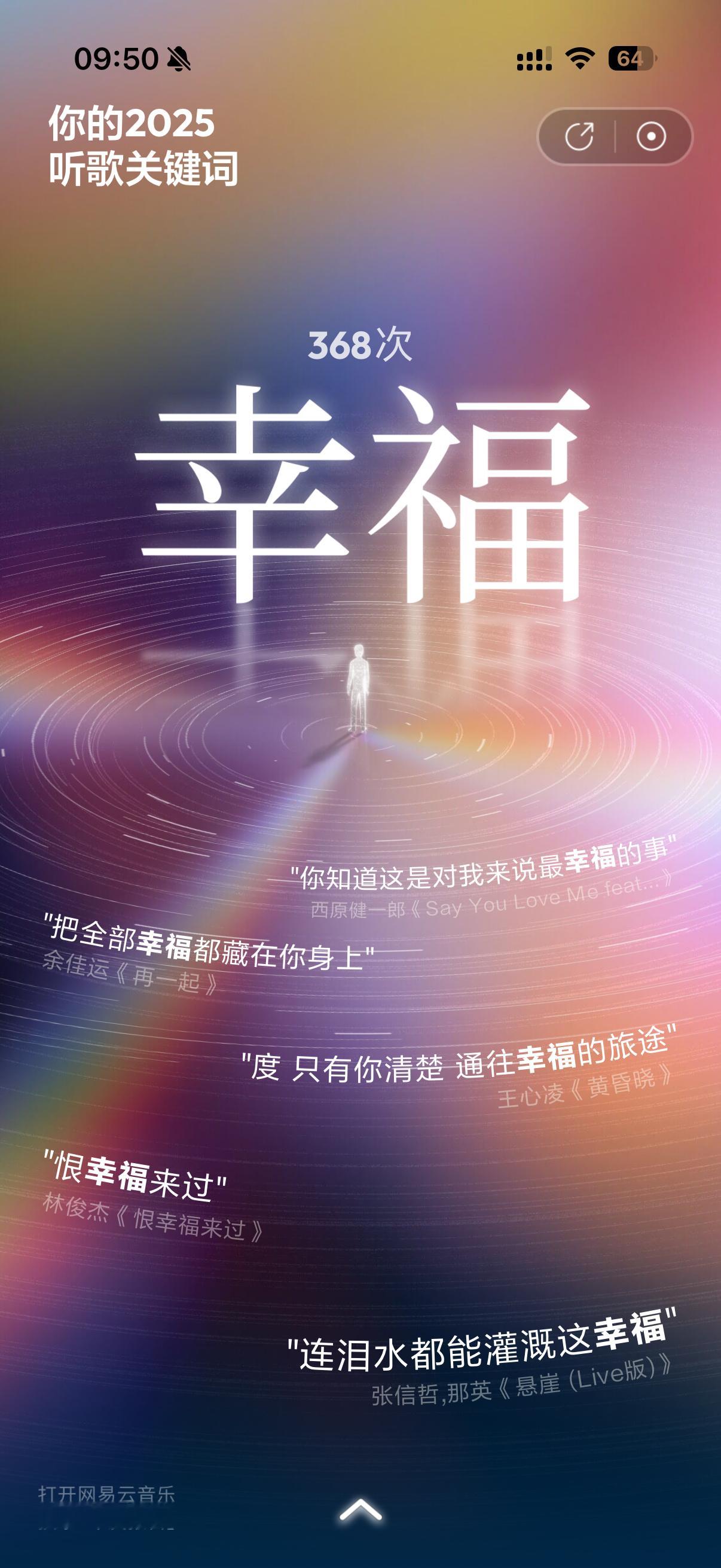 网易云年度听歌报告现在网易云用的少了Apple Music用的多但还是听了290个小时听歌关键词是幸福