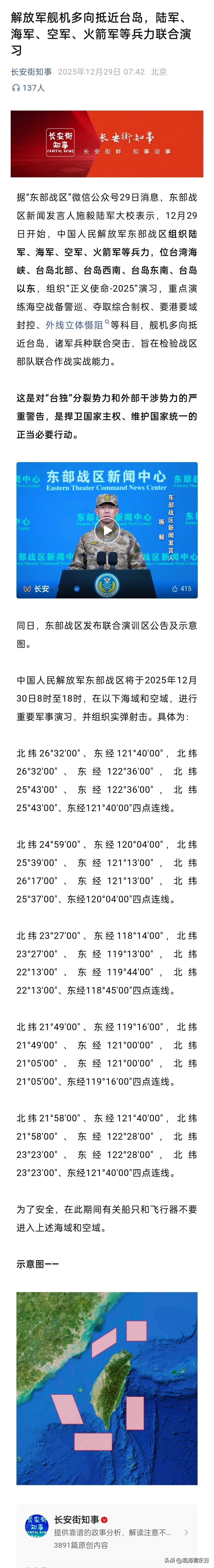 “夺取综合制权、要港要域封控、外线立体慑阻等科目”——新说法,针对的是美国新军售,可能是演练拦截