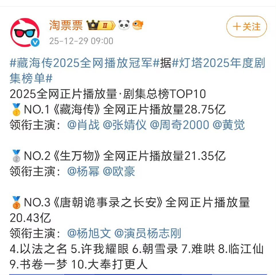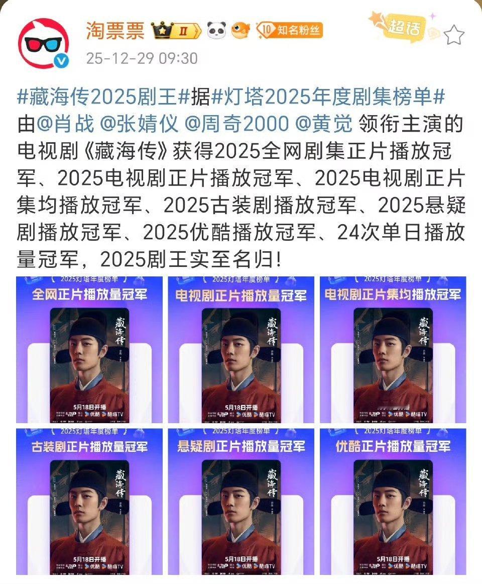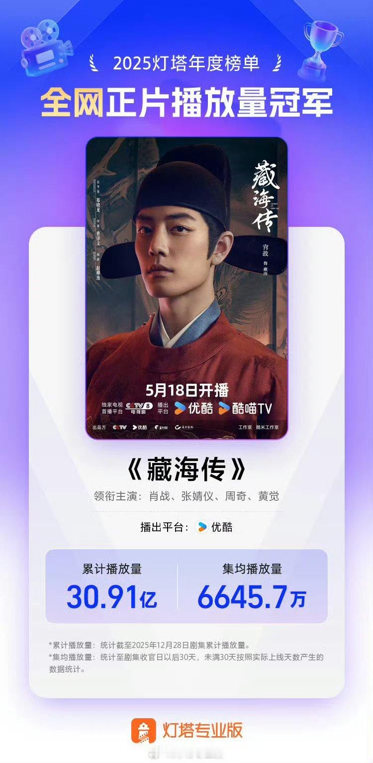 恭喜《藏海传》拿下2025年灯塔/云合/猫眼总播放量年冠👊🏻👊🏻肖战藏海太权威了