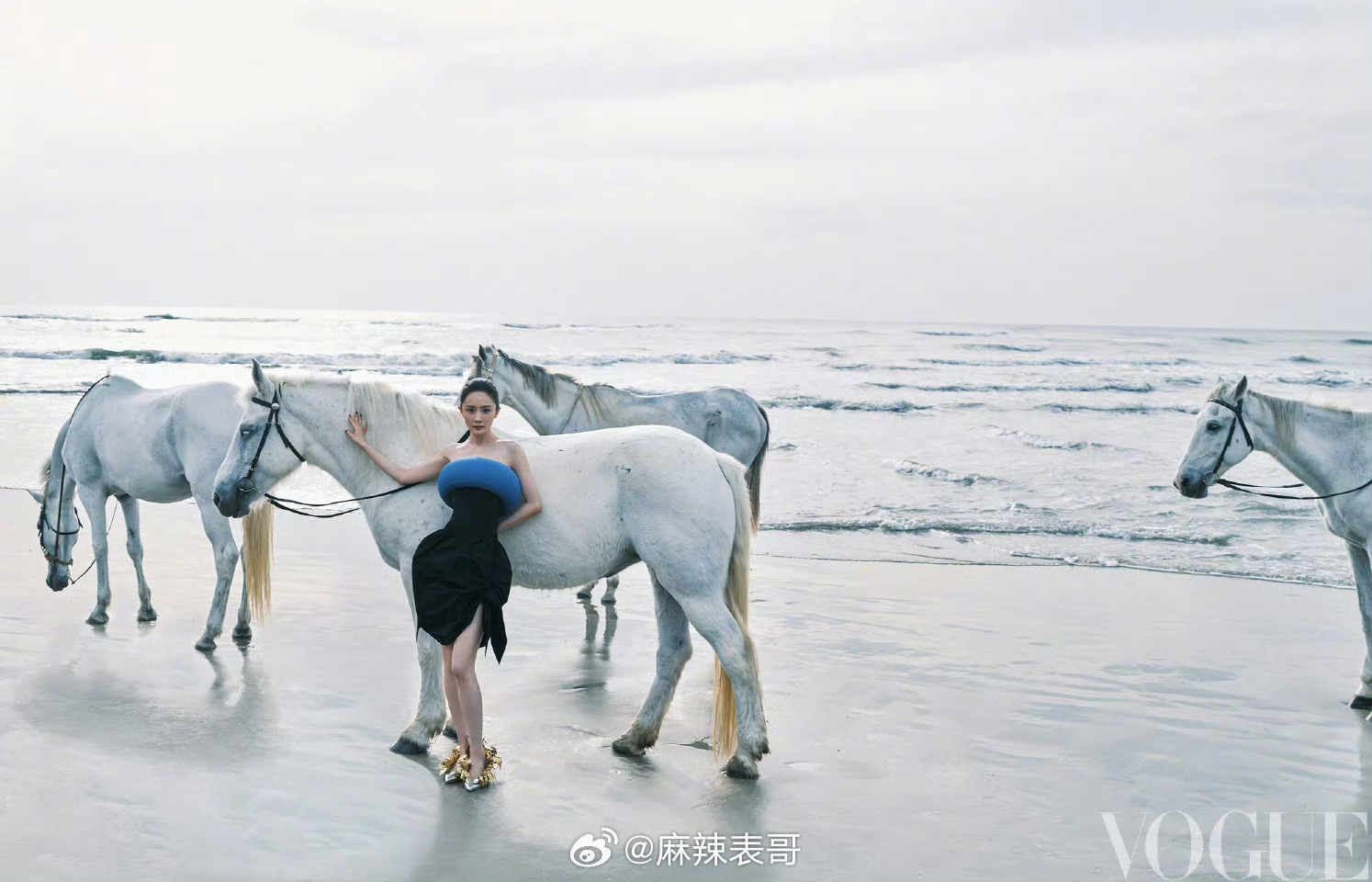 杨紫穿的衣服设计灵感来自于迪丽热巴,有趣的是,今天杨紫VOGUE首张封面热度出来