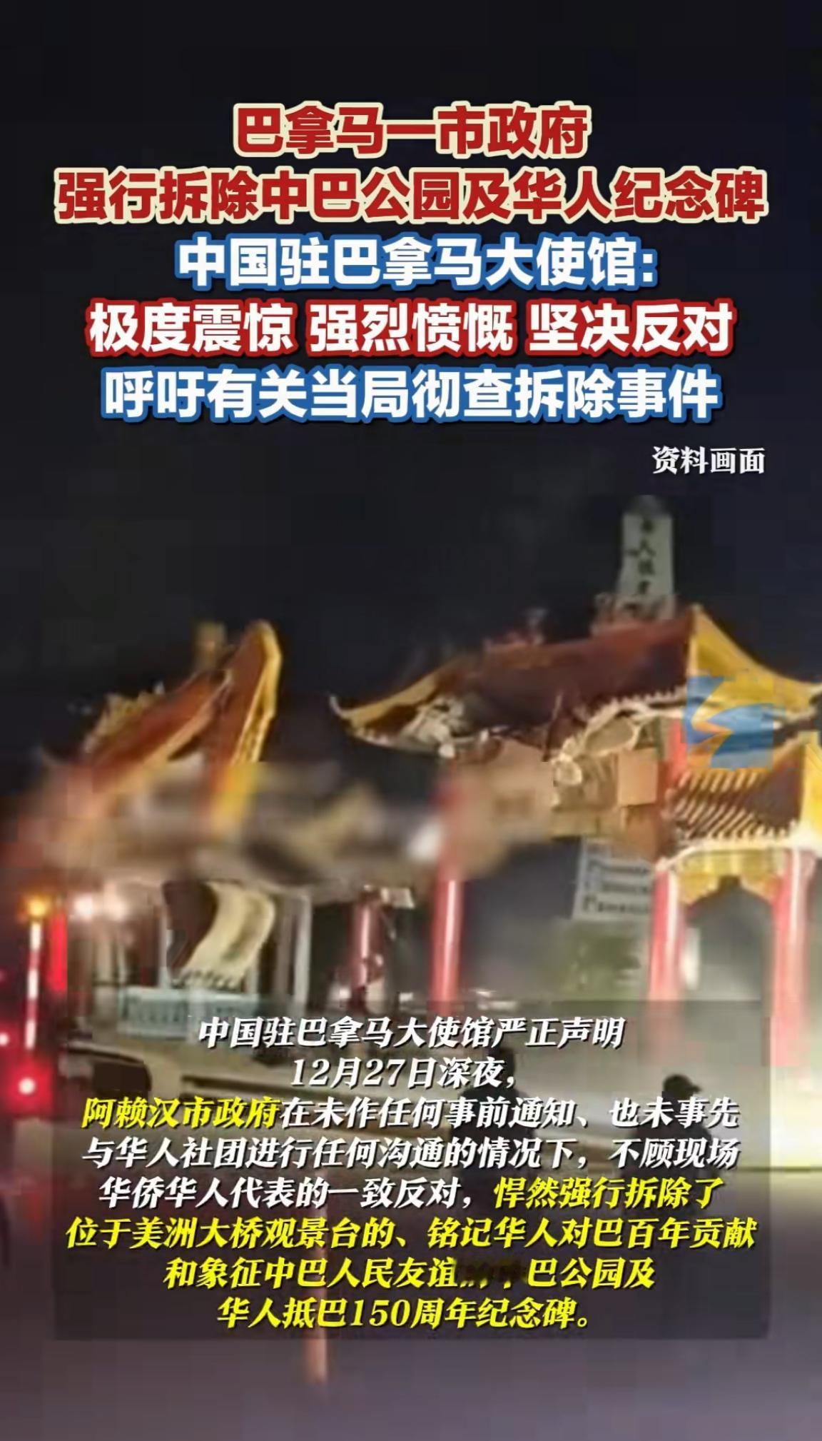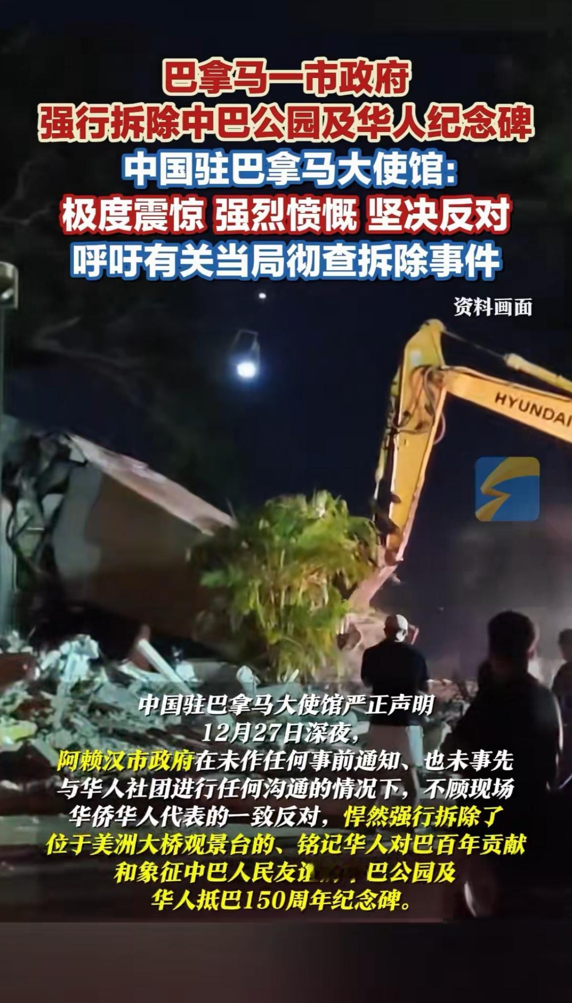 和流氓土匪讲道理,还要军舰做什么?超级大国的尊严不是讲出来的而是打出来的。 象征中巴150年友谊及华人150抵达巴拿马150年的纪念碑和公园,被地方政府夜里突然强行拆除。 作为当地几十年的地标性建筑,坐落于巴拿马运河启端美洲大桥观景台。 巴拿马总统表达谴责,巴拿马30万华人十分愤慨,我国驻巴大使强烈反对。 还是那句话,大国的利益与军力保障,密不可分。 强军之路,必须全力以赴。