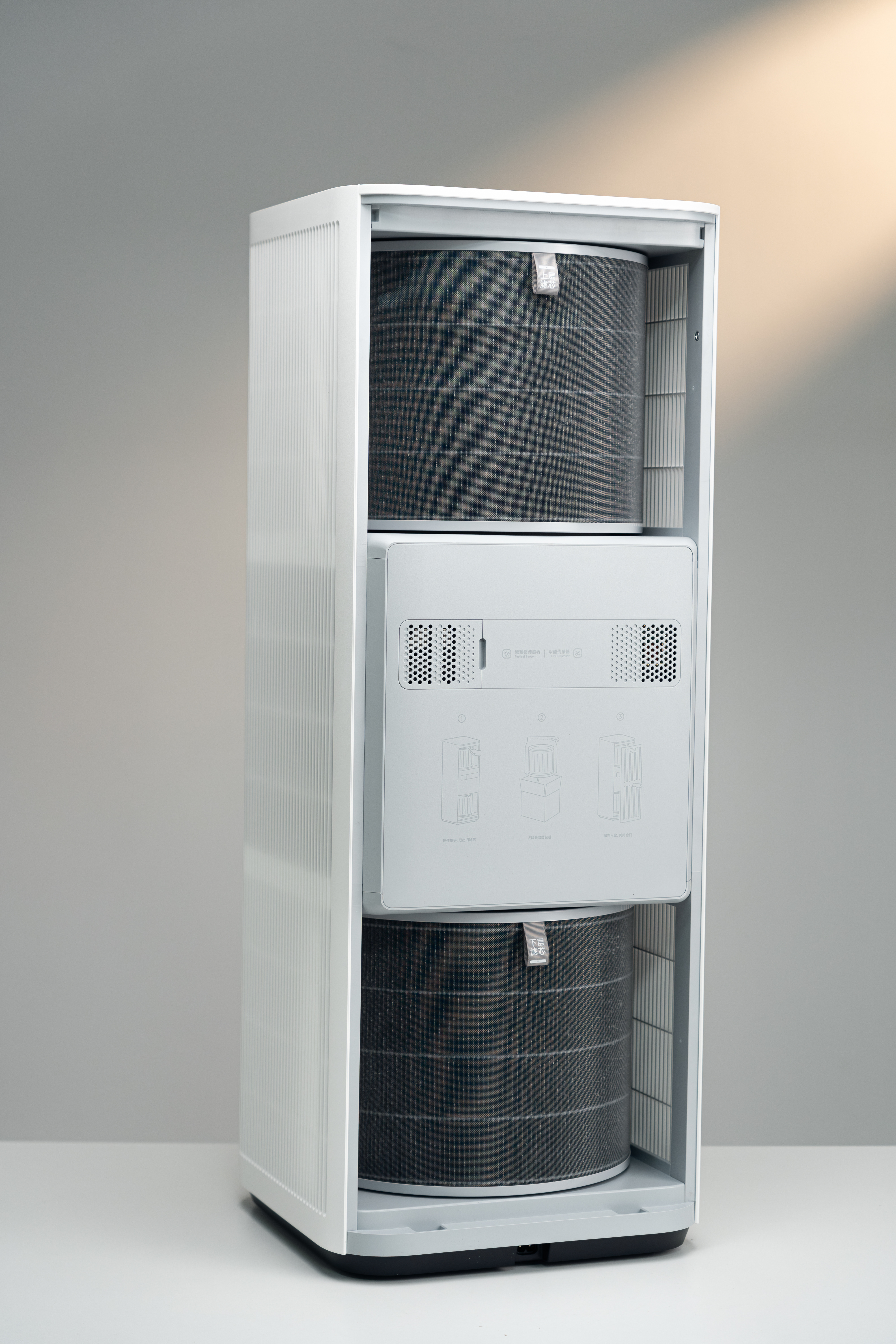 米家空气净化器6 Pro终于来了!结构和之前的米家空气净化器6 双芯除醛差不多,两侧+背面三面进风,再从两侧出风,搭配上下两个大滤芯,可以提升整个过滤净化过程的进出气量,因为Pro的尺寸更大,净化效果和净化适用面积也都得到了升级。而且因为风道不再是下进上出,现在净化器的顶部也可以置物放东西。功能上,主打的依旧还是除甲醛能力,下层的这颗专业除醛滤芯,有效吸附再通过氨基分解,可以彻底消灭甲醛。