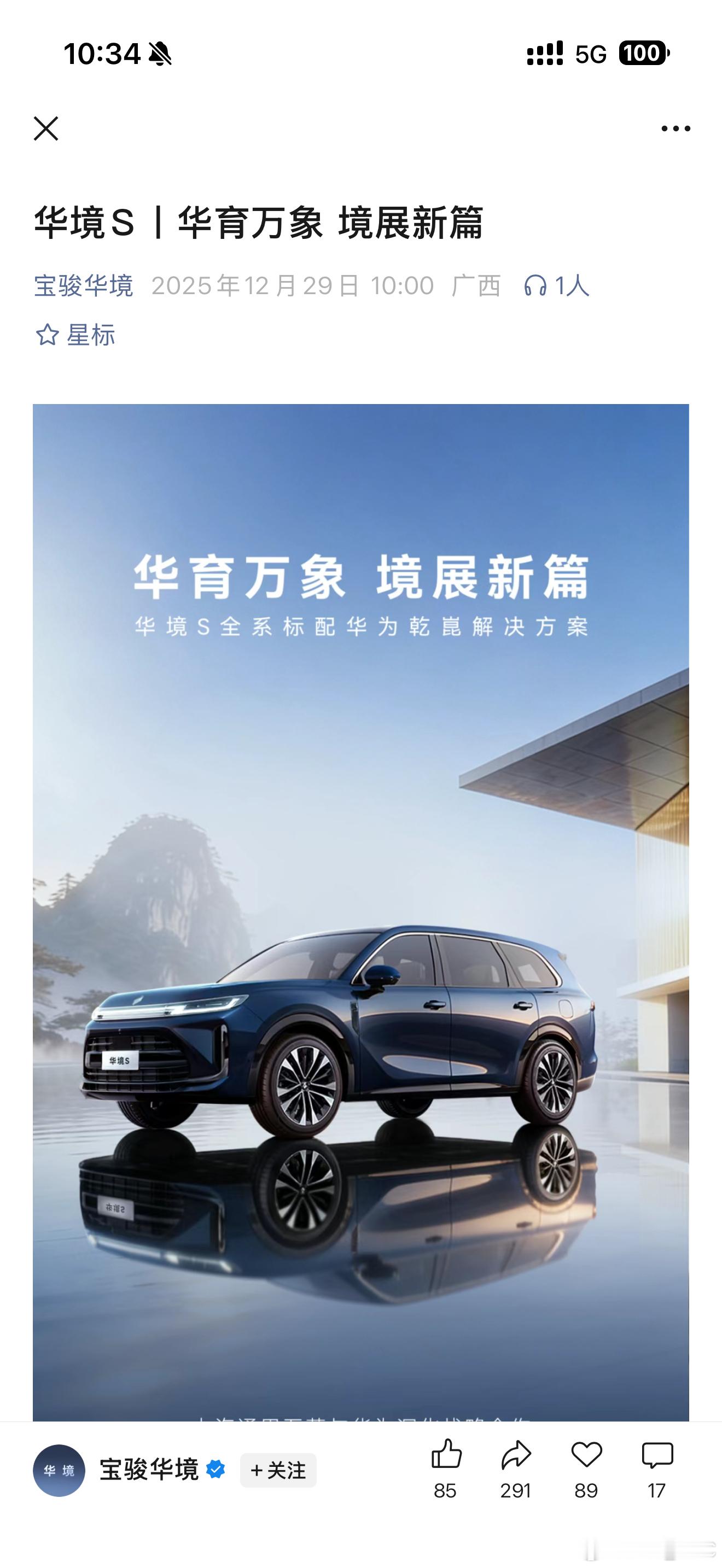华境S正式登陆华为乾崑APP看图一细节,华境和其他两个境地位看起来不太一样。不仅在排位后于深蓝、岚图、奥迪,写的是宝骏不是“华境”。更像是宝骏一个单独系列,不算是独立品牌。 宣发节奏也快得有些突然,没有预热外形直接蹦出来。